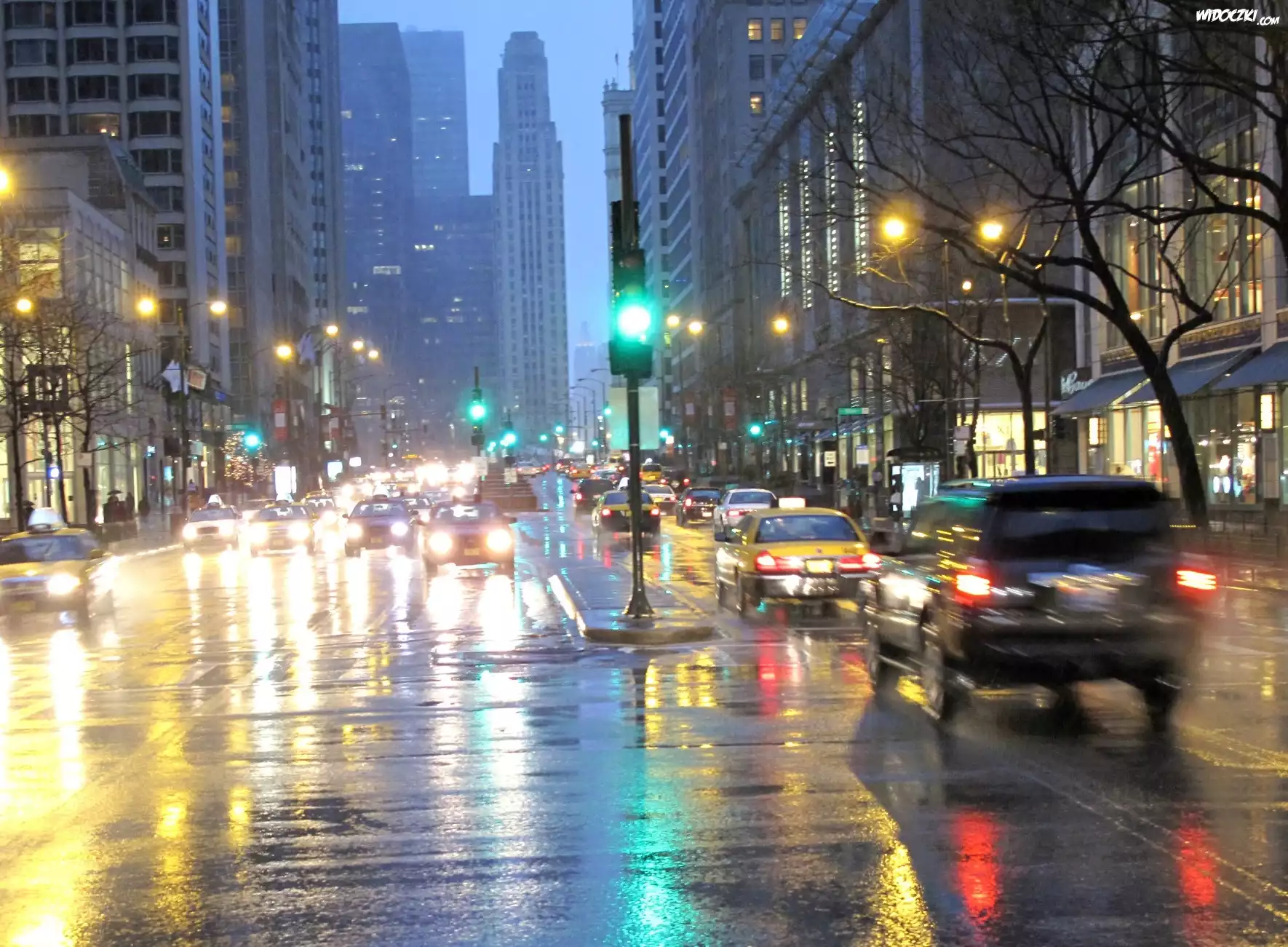 Zdjęcia, Miasto, Ulice, Drapacze, Chmur, Oświetlenie