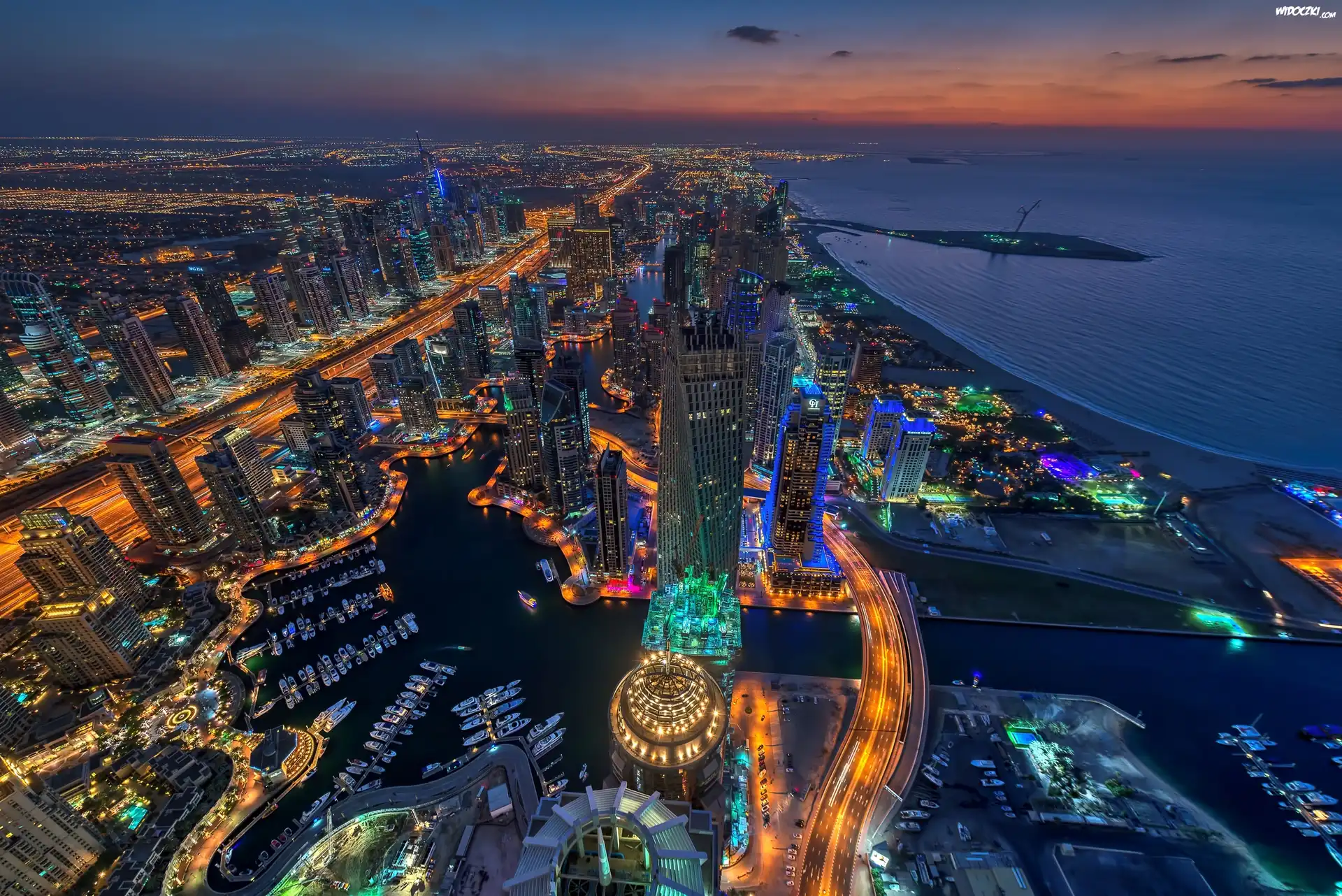 Zdjęcia, Dubaj, Miasto Nocą, Panorama, Z Lot Ptaka
