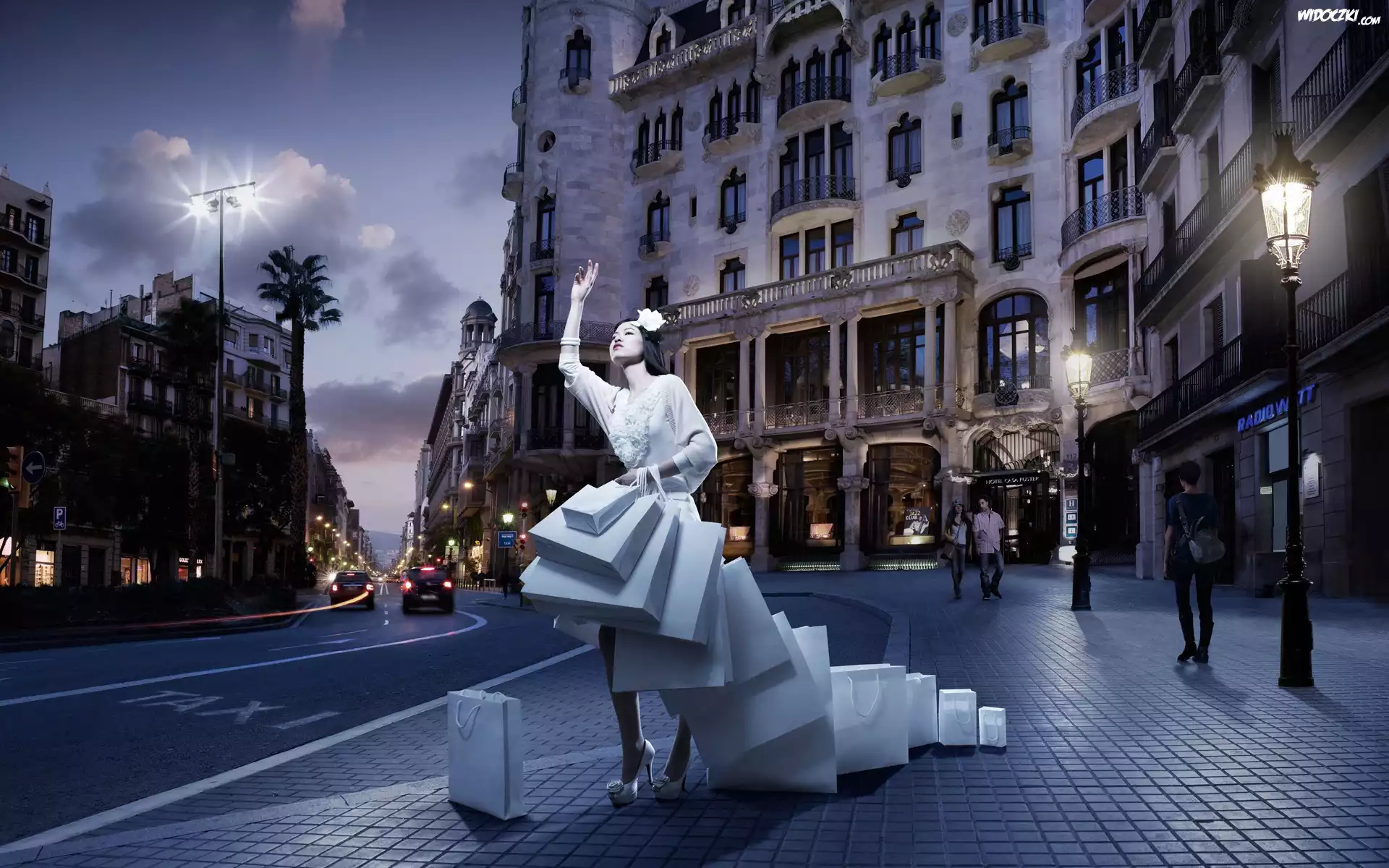Zdjęcia, Miasto, Domy, Ulica, Kobieta, Zakupy