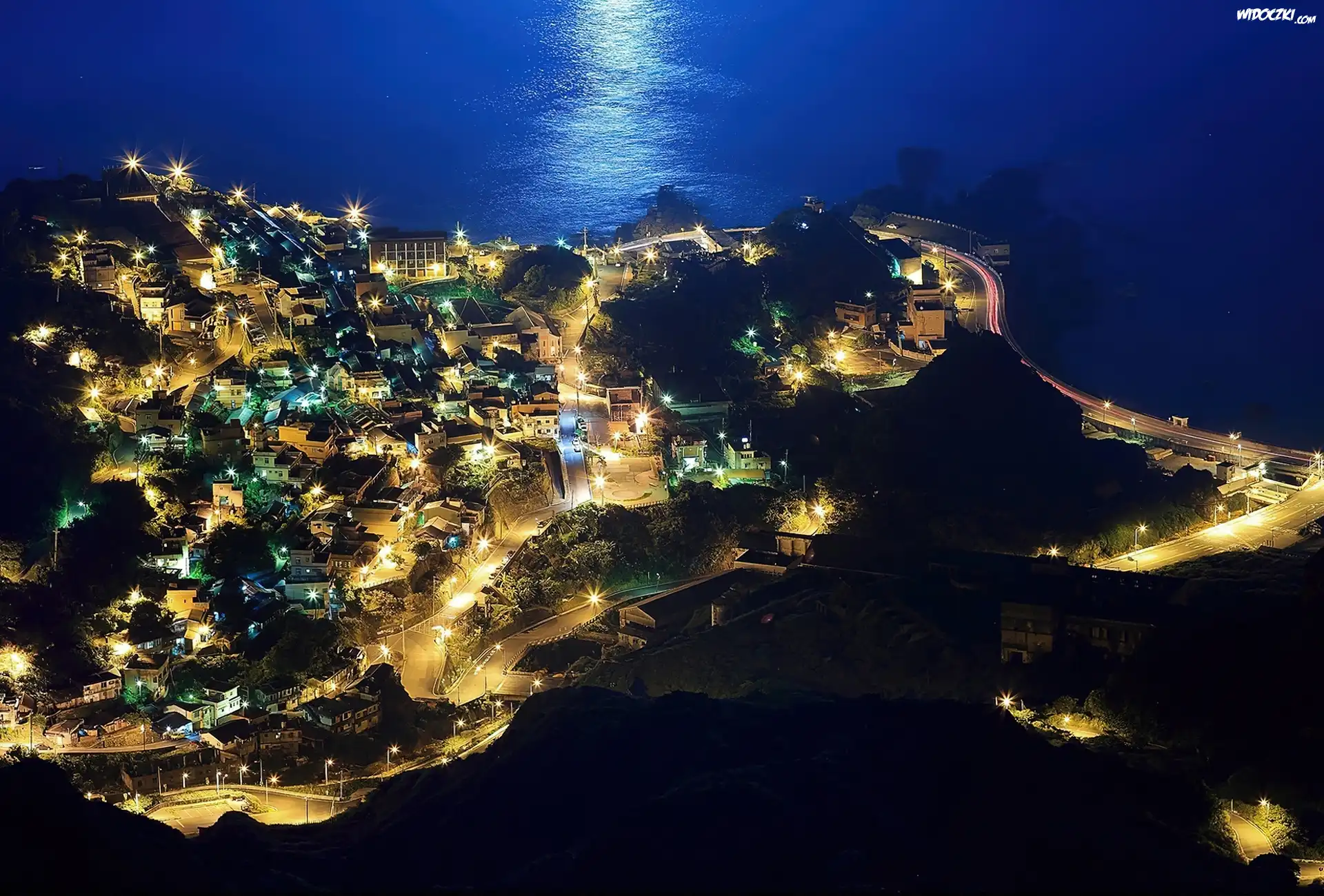 Zdjęcia, Morze, Miasto, Nocą