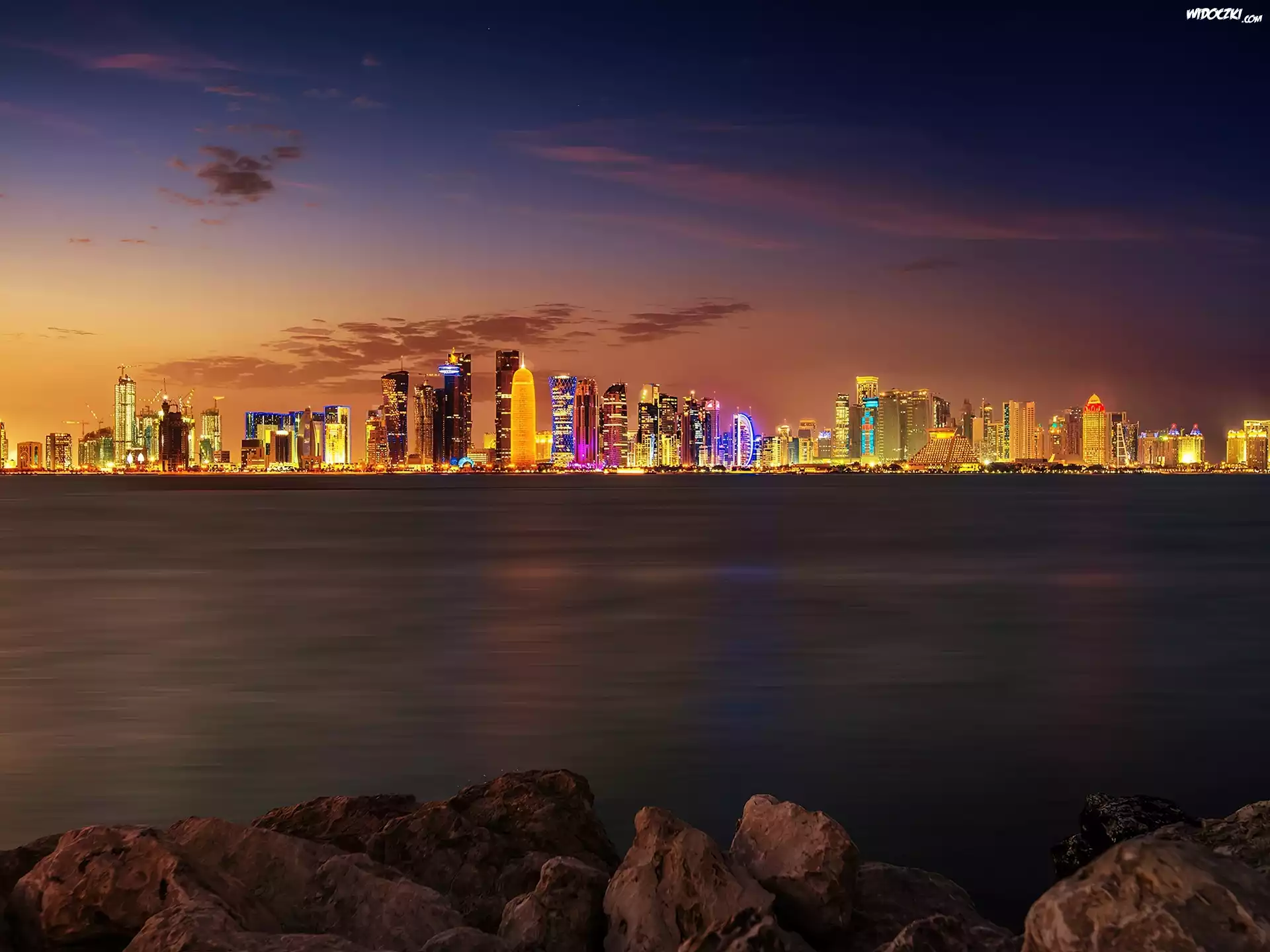 Oświetlone, Miasto, Morze