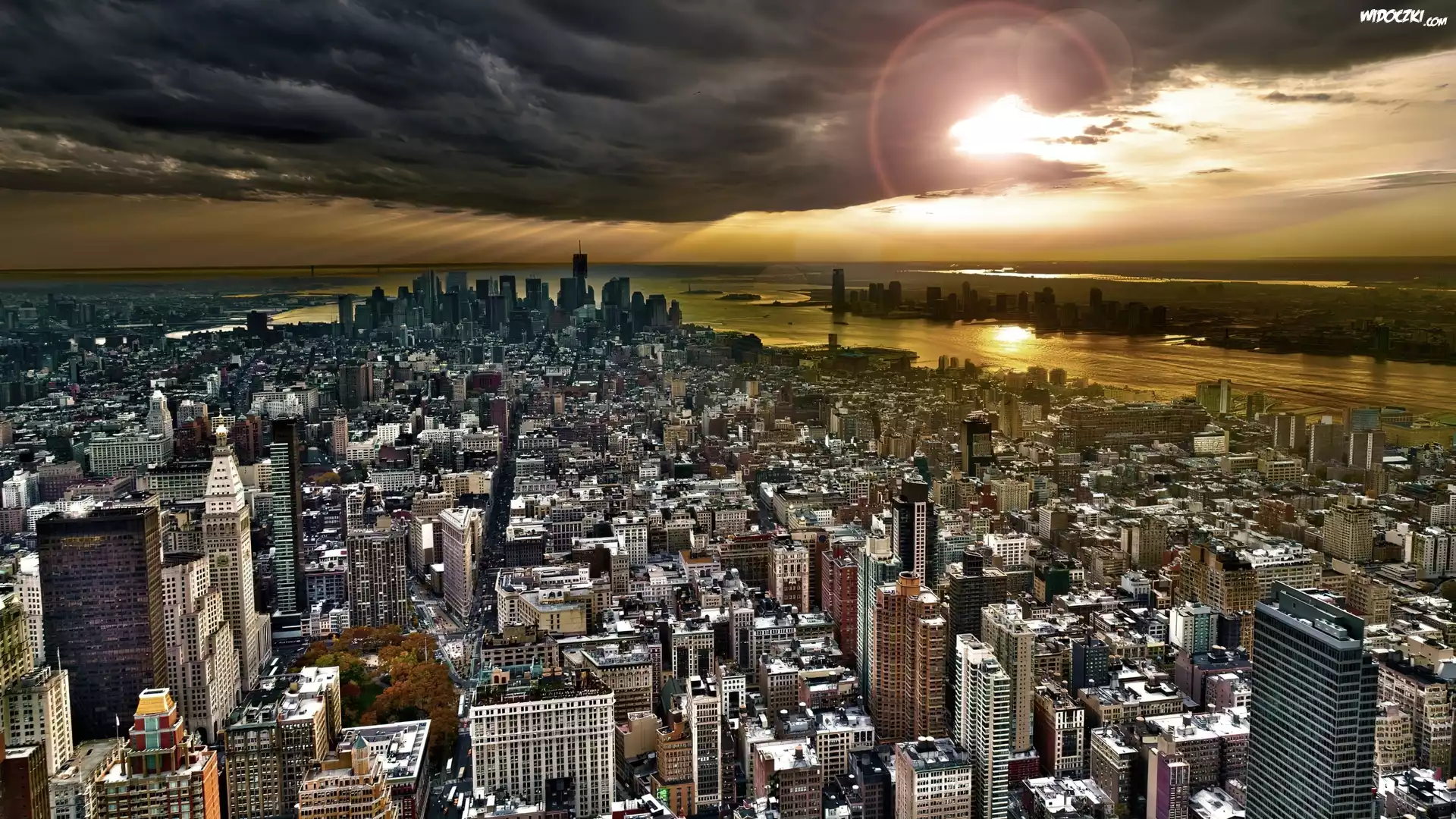 Zdjęcia, Miasto, Słońce, Przebujające, Przez, Chmury