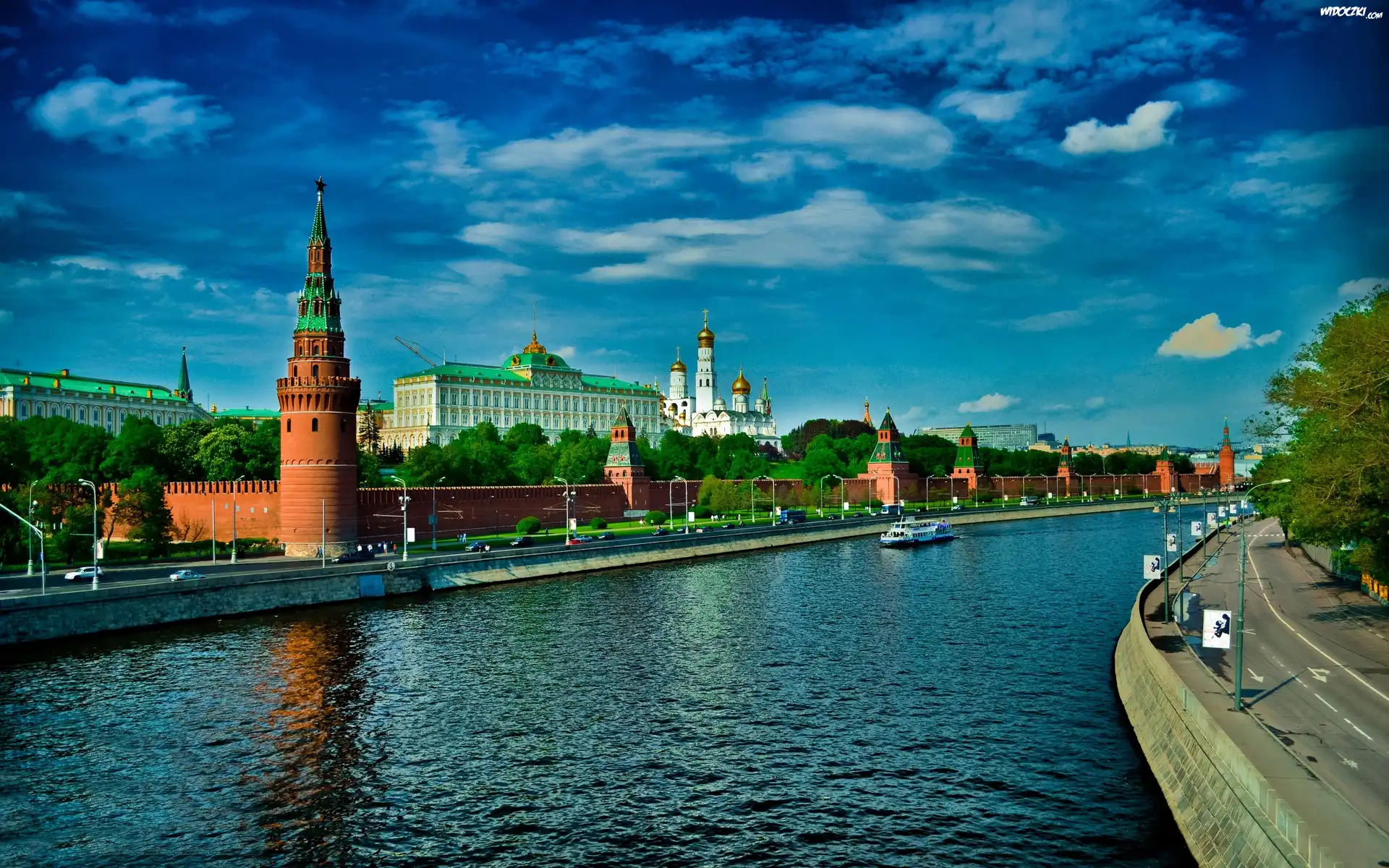 Moskwa, Kreml, Czerwony, Mur, Rzeka