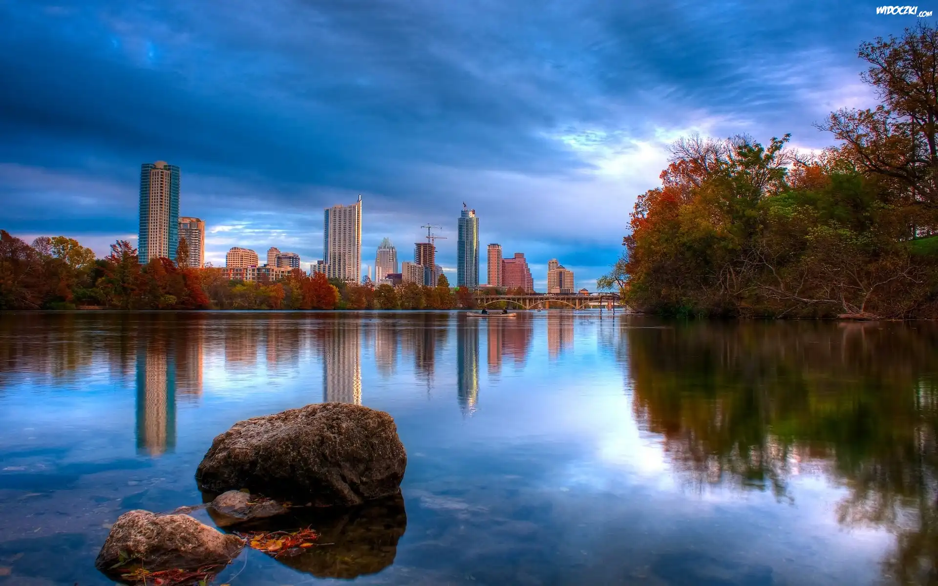 Zdjęcia, Rzeka, Miasto, Drzewa