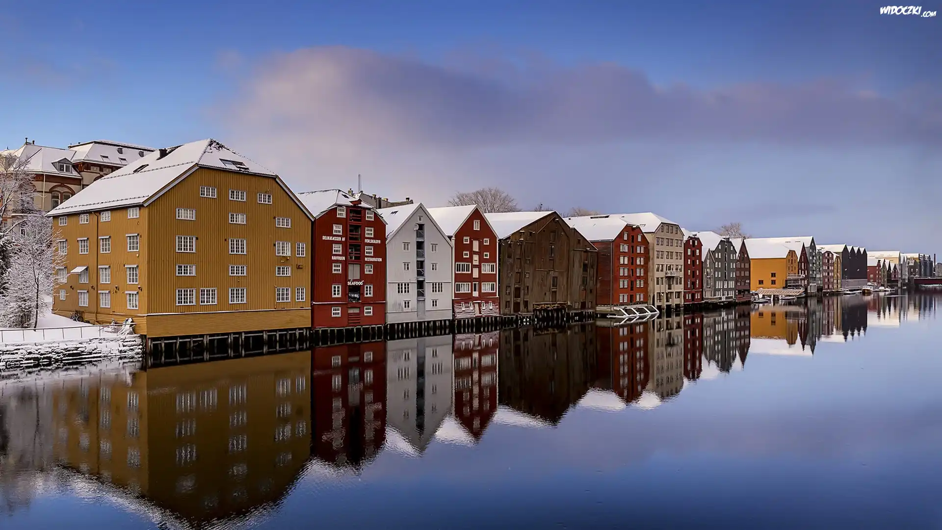 Zdjęcia, Miasto Trondheim, Norwegia, Domy, Rzeka Nidelva