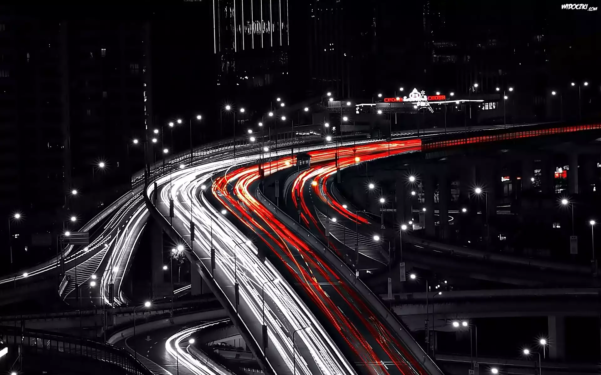Zdjęcia, Miasto, Noc, Ulice, Smugi, Światła