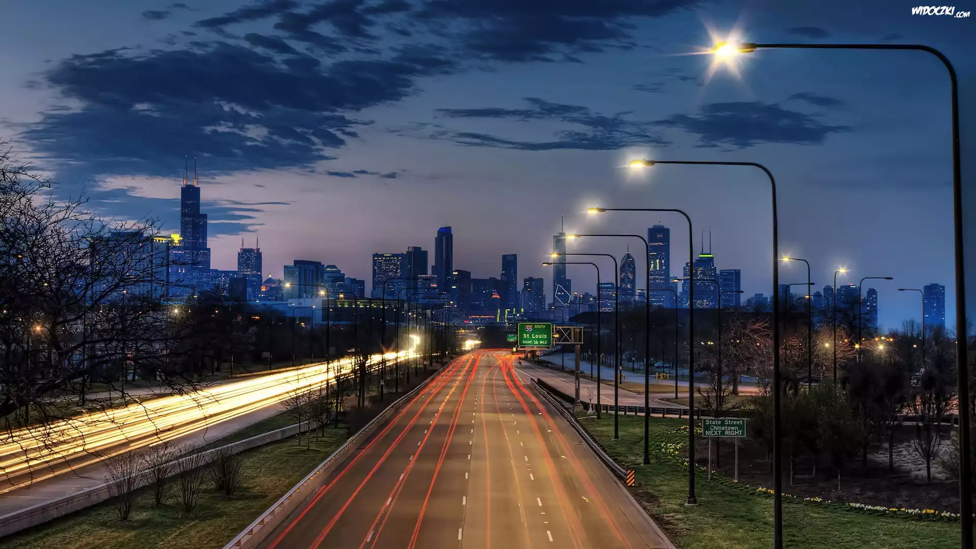 Zdjęcia, Miasto, Noc, Ulica, Wieżowce, Latarnie