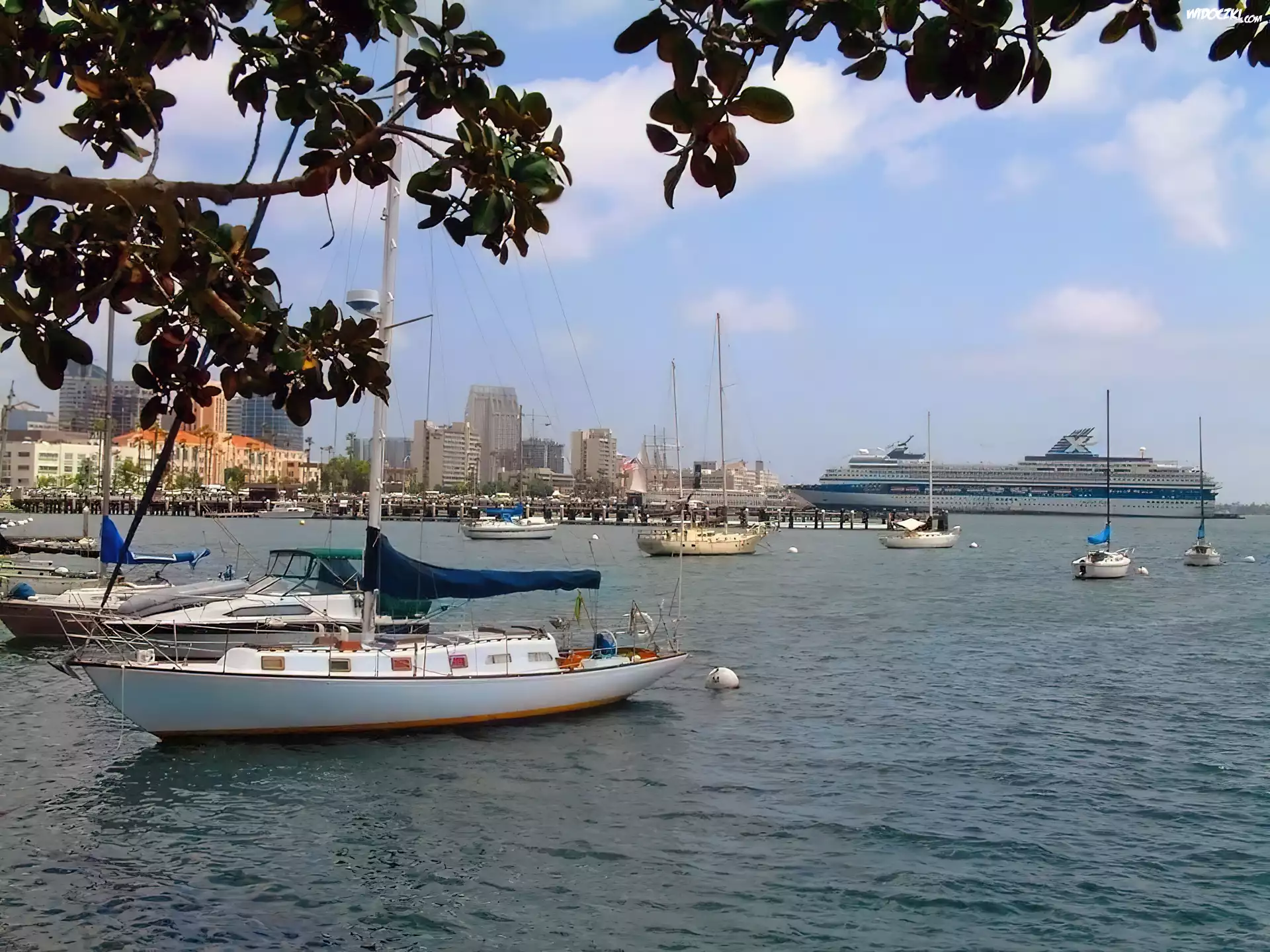 Miasto, Portowe, Morze, Wybrzeże, Żaglówki