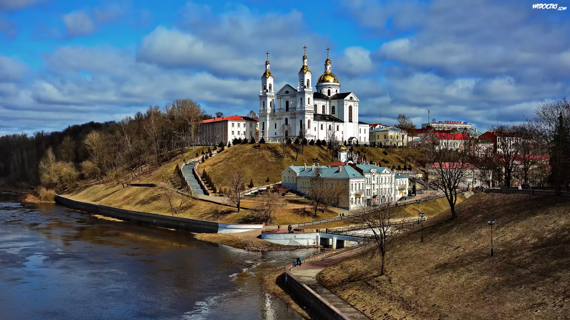 Miasto, Rzeka Dźwina, Wzgórze, Cerkiew Zaśnięcia Najświętszej Maryi Panny, Klasztor Bazylianów, Witebsk, Białoruś |