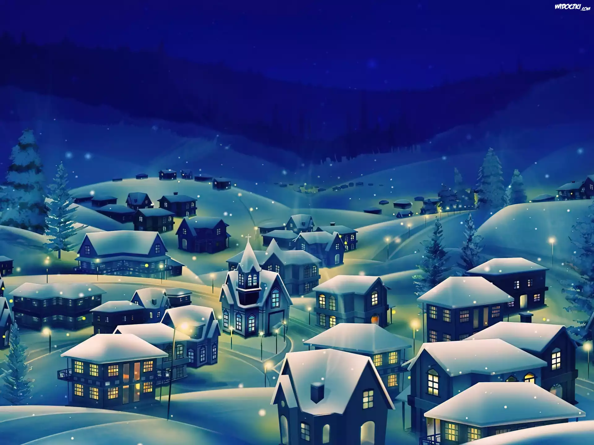Zdjęcia, Miasto, Noc, Zima, Malarstwo