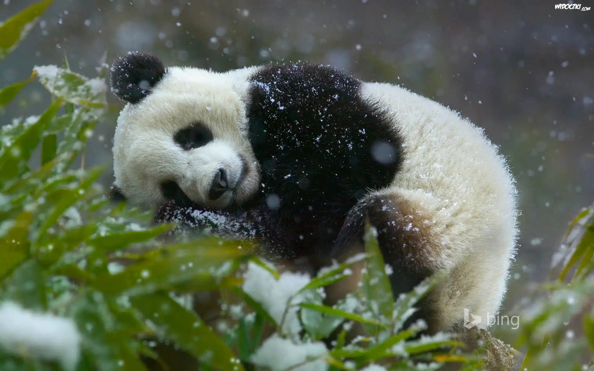 Zdjęcia, Miś, Panda, Drzewo, Śnieg, Zima
