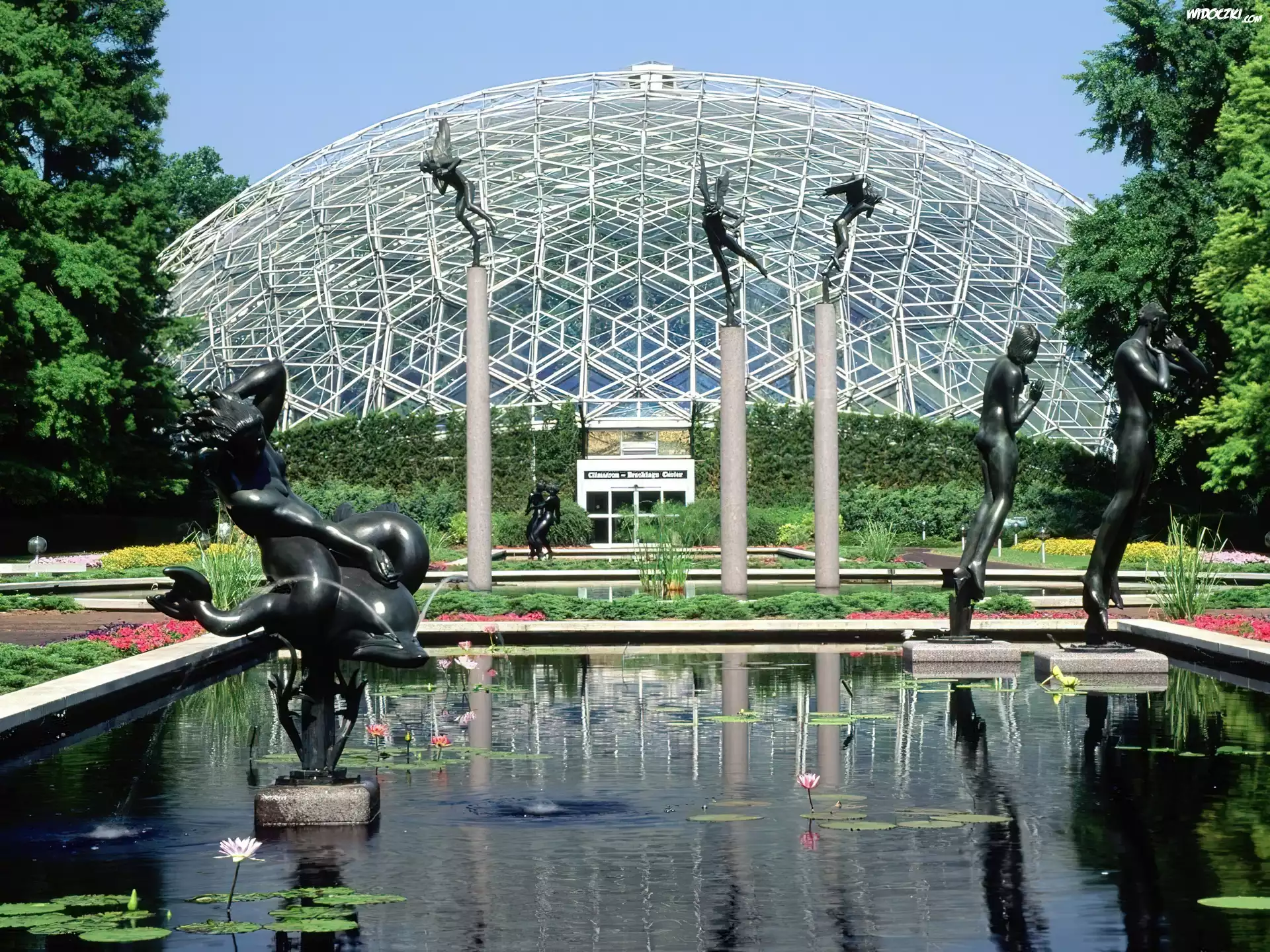 Zdjęcia, Missouri, Ogród, Botaniczny, Basen, Figurki