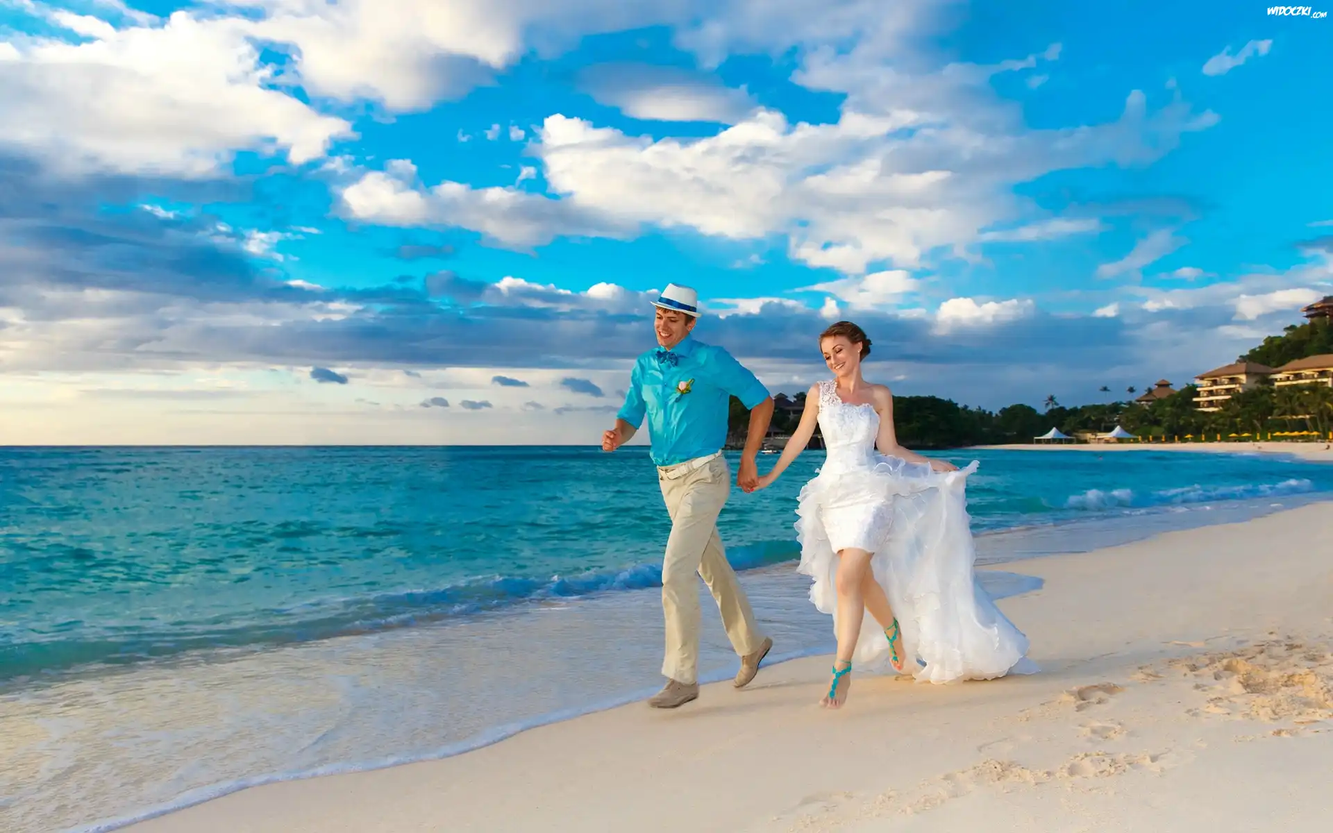 Zdjęcia, Młoda, Para, Plaża, Morze