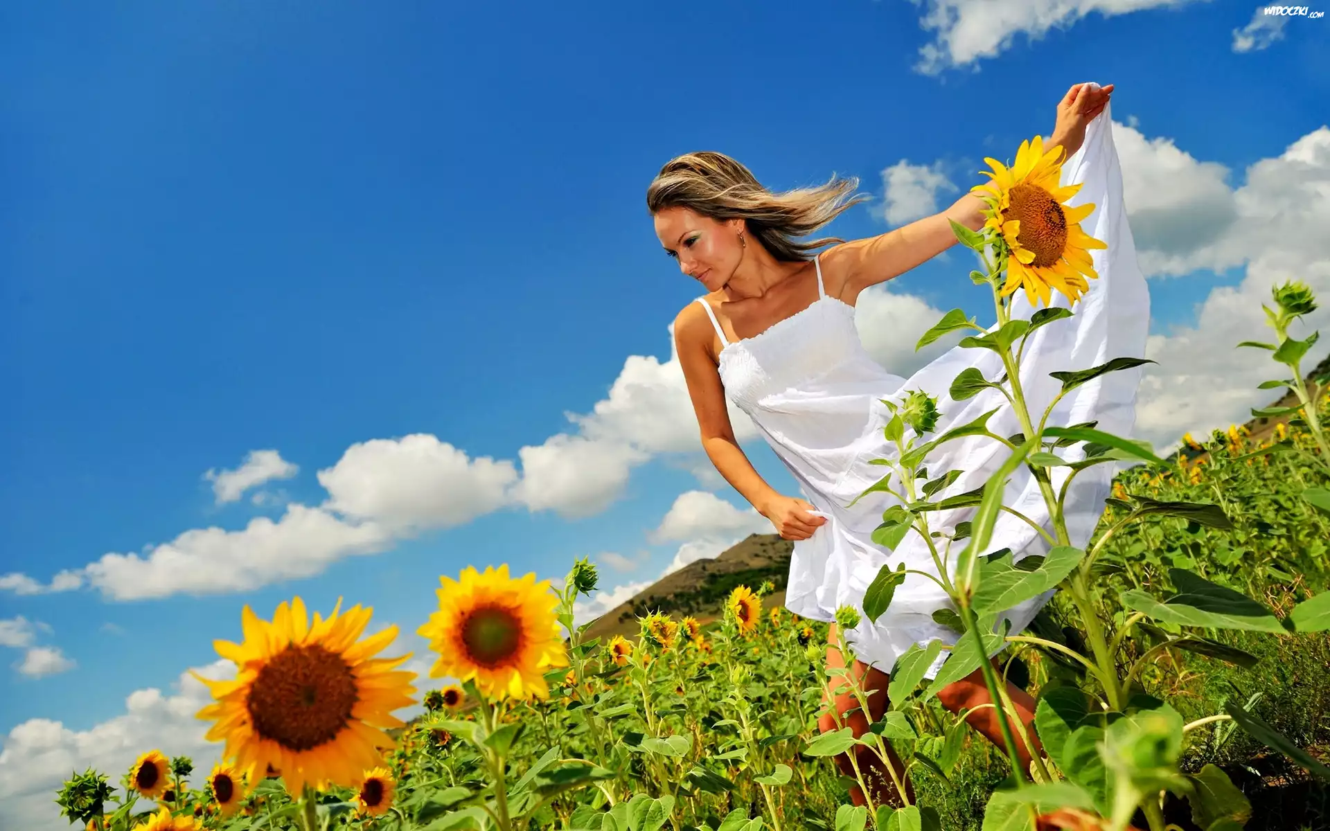 Młoda, Kobieta, Na Polu, Słoneczników