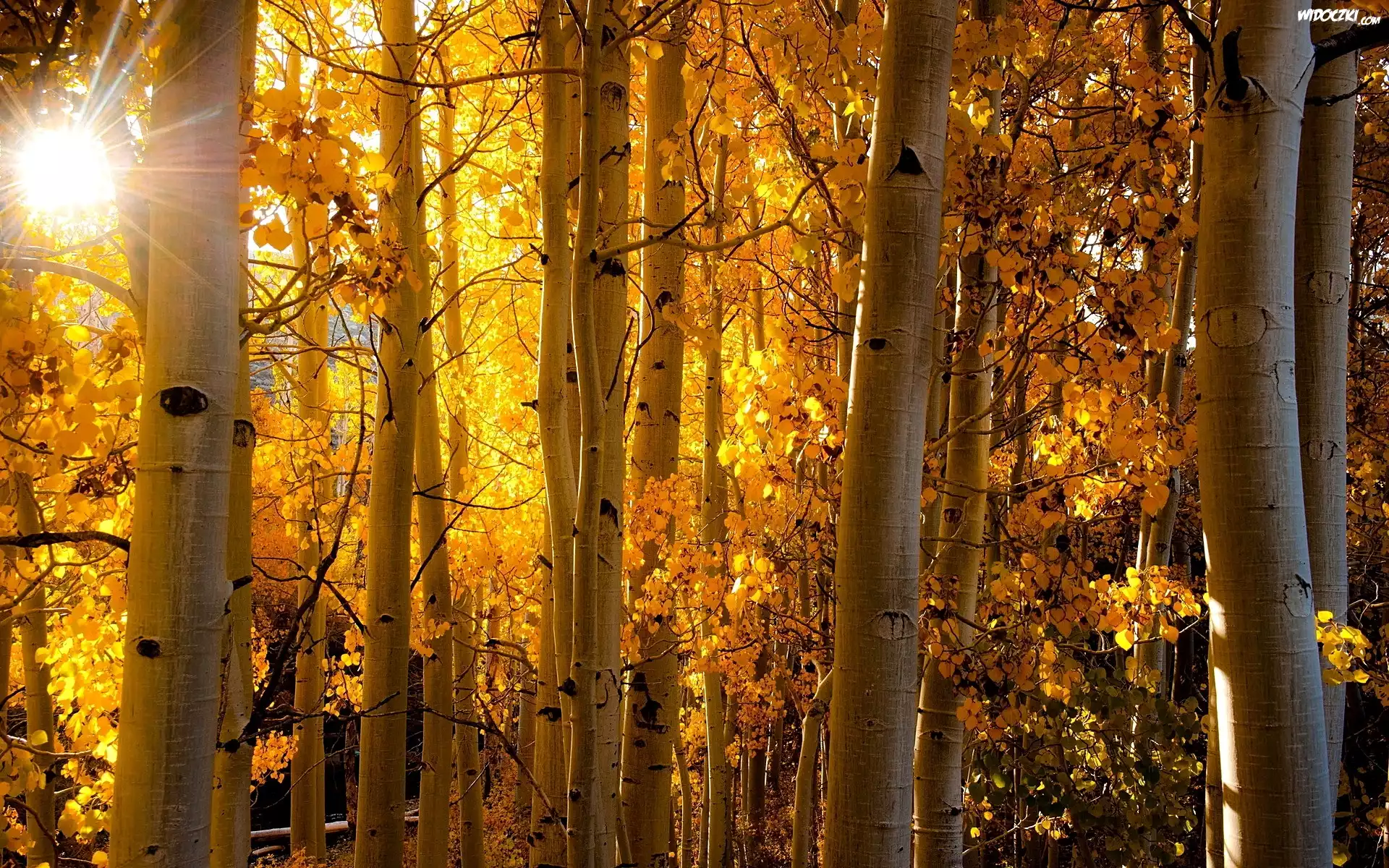 Zdjęcia, Młody, Brzozowy, Las, Promienie Słońca, Jesień