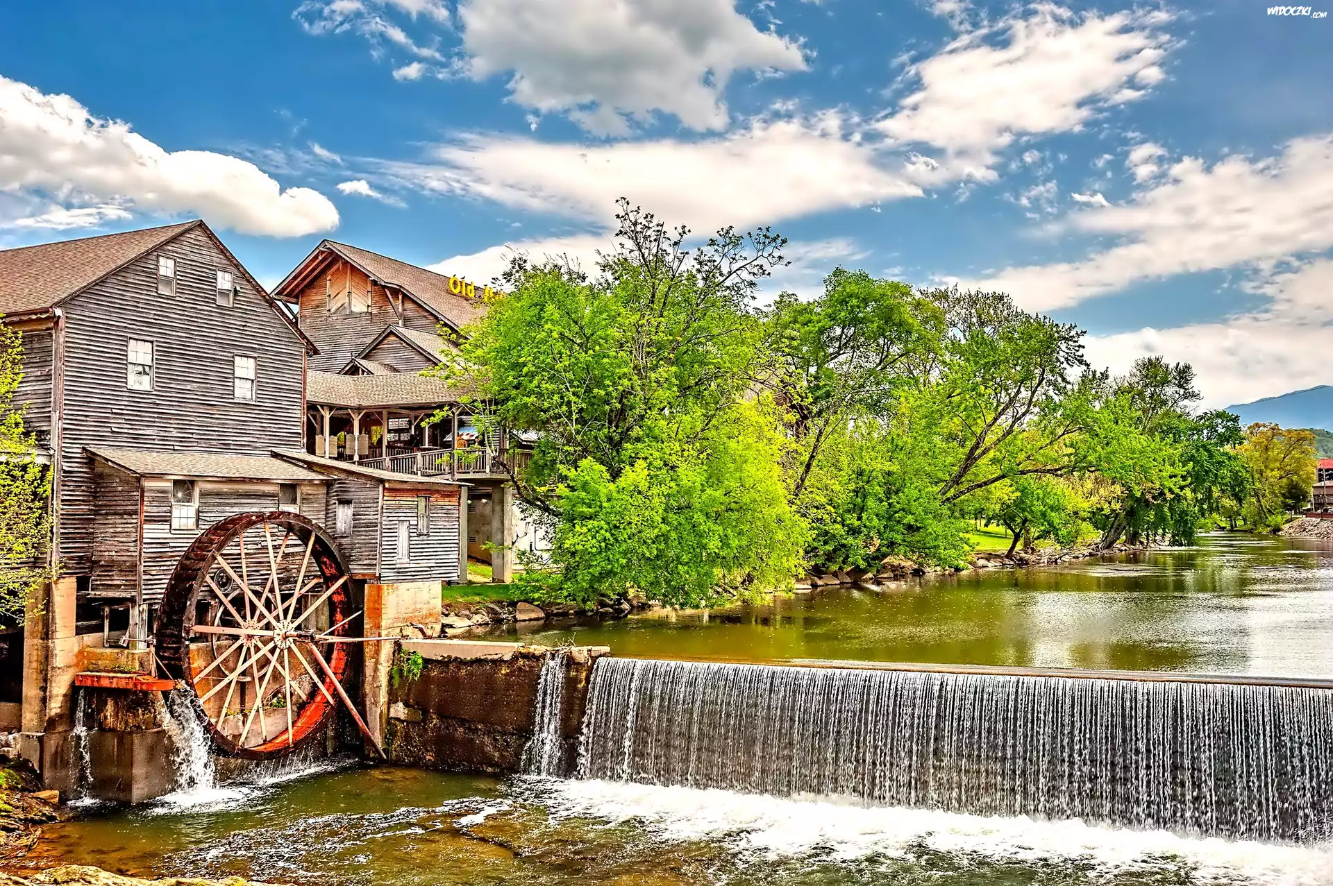 Młyn Wodny, Rzeka, Dom, Drzewa