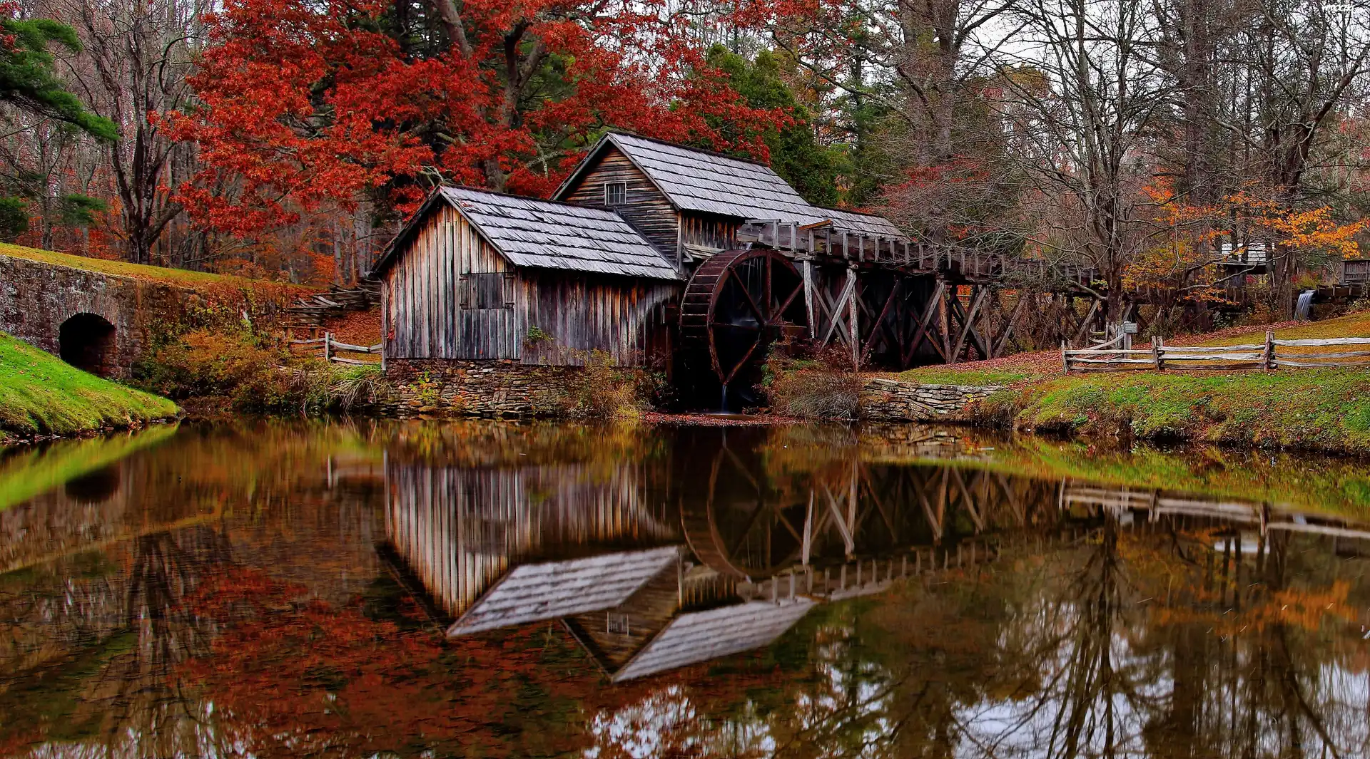 Młyn, Wodny, Rzeka, Most, Las, Jesień