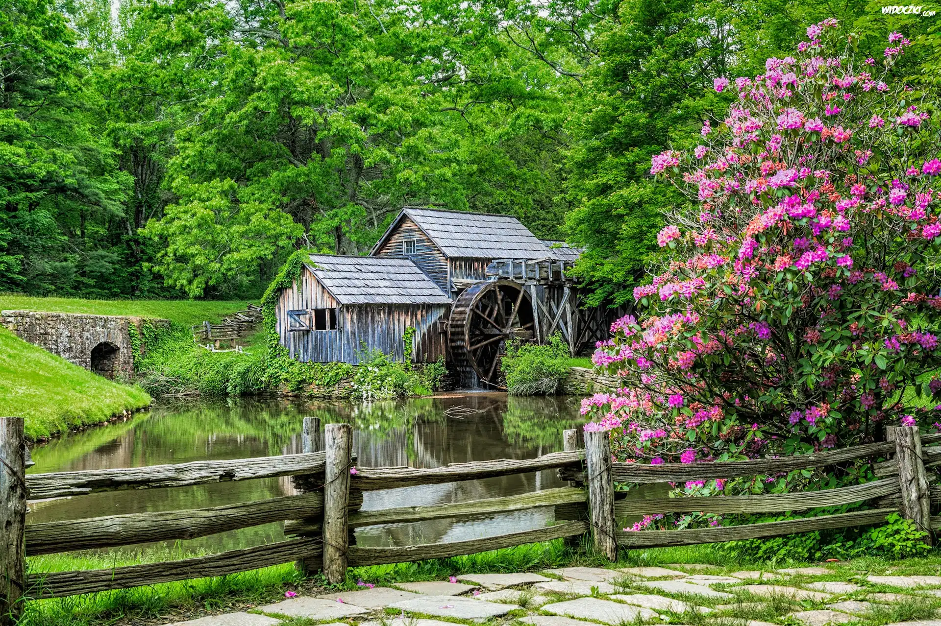 Zdjęcia, Zabytkowy, Młyn, Mabry, Mill, Wirginia, Stany, Zjednoczone, Rzeka