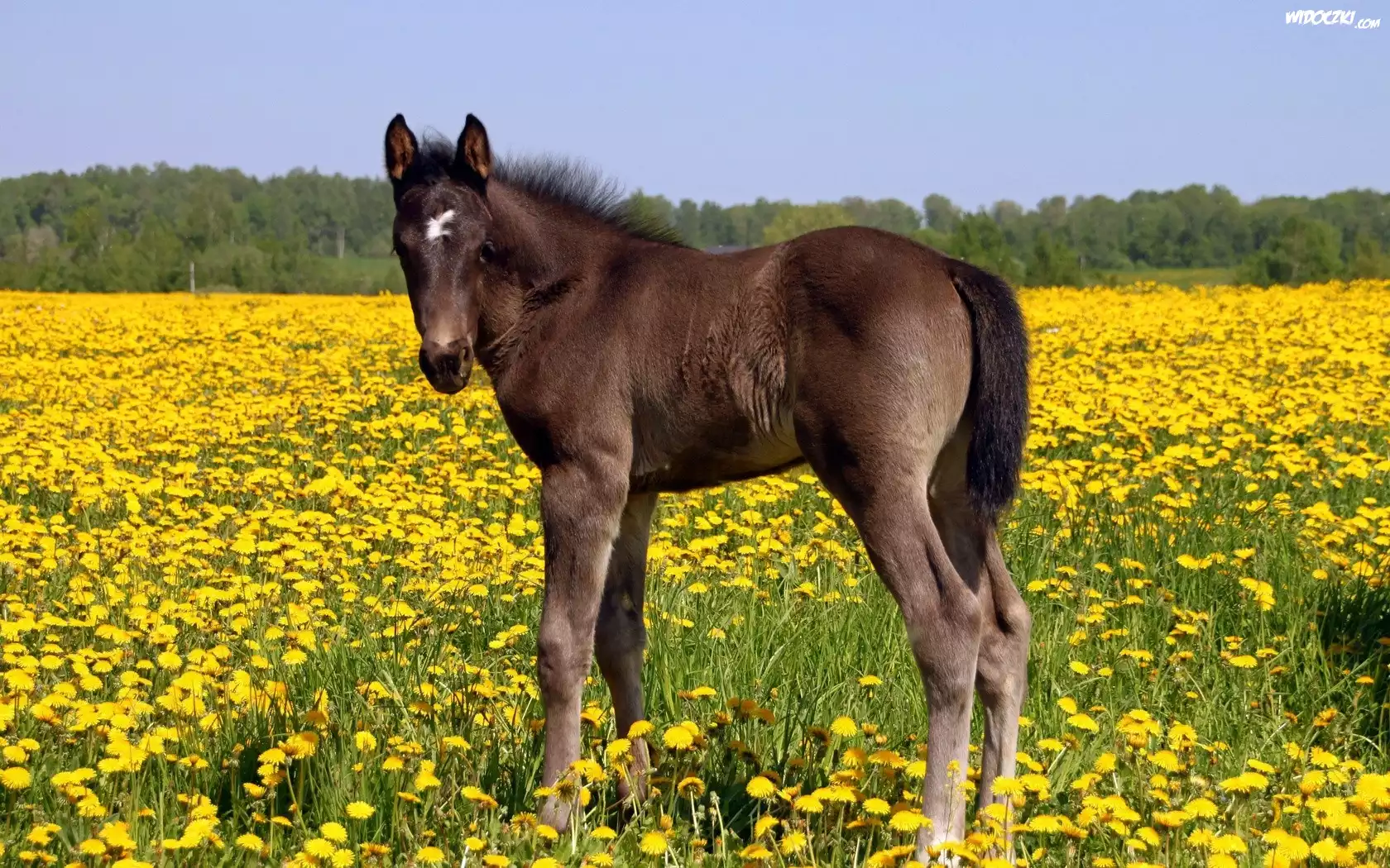 Zdjęcia, Źrebak, Łąka, Mniszki, Pospolite