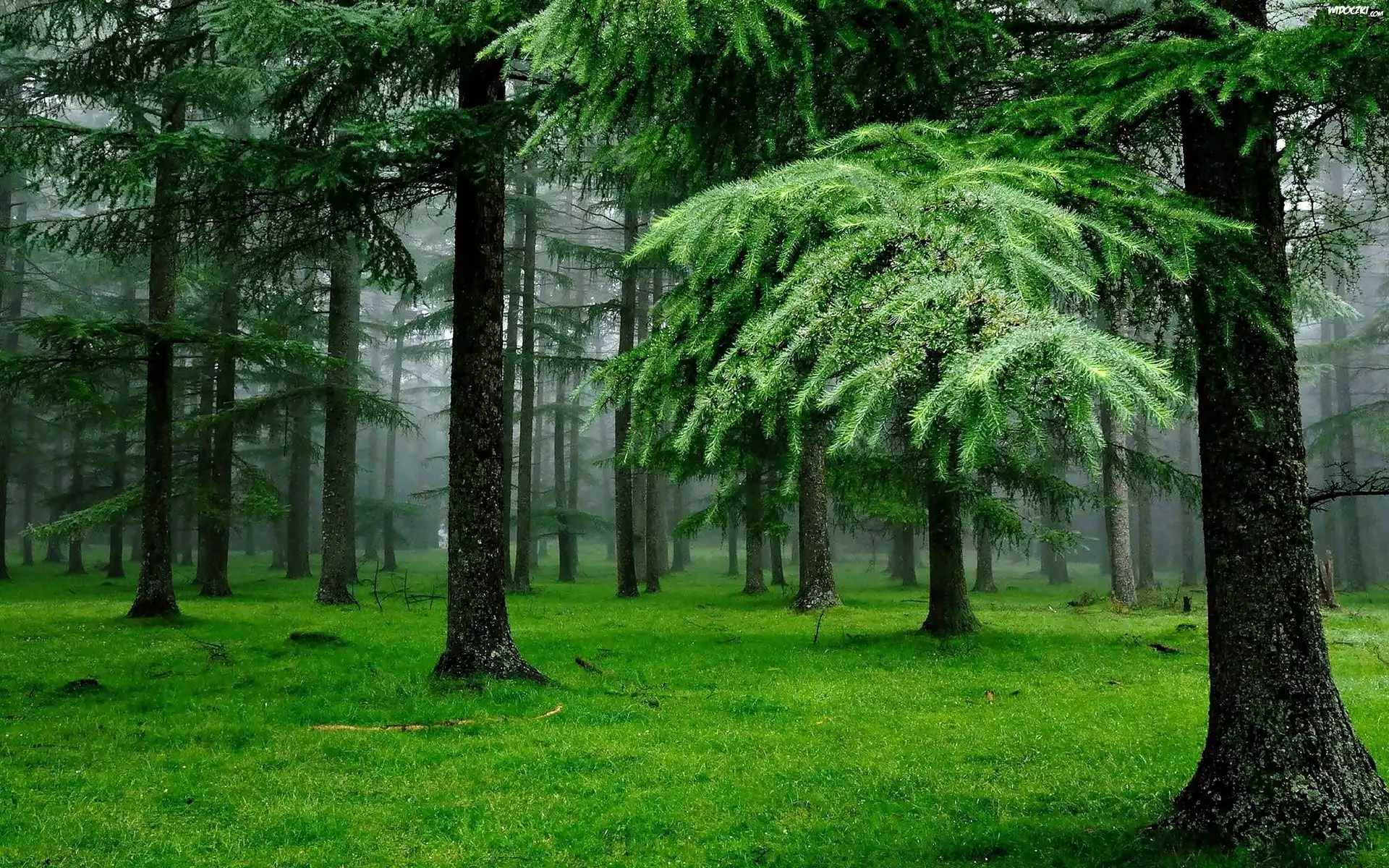 Las, Modrzewie, Mgła