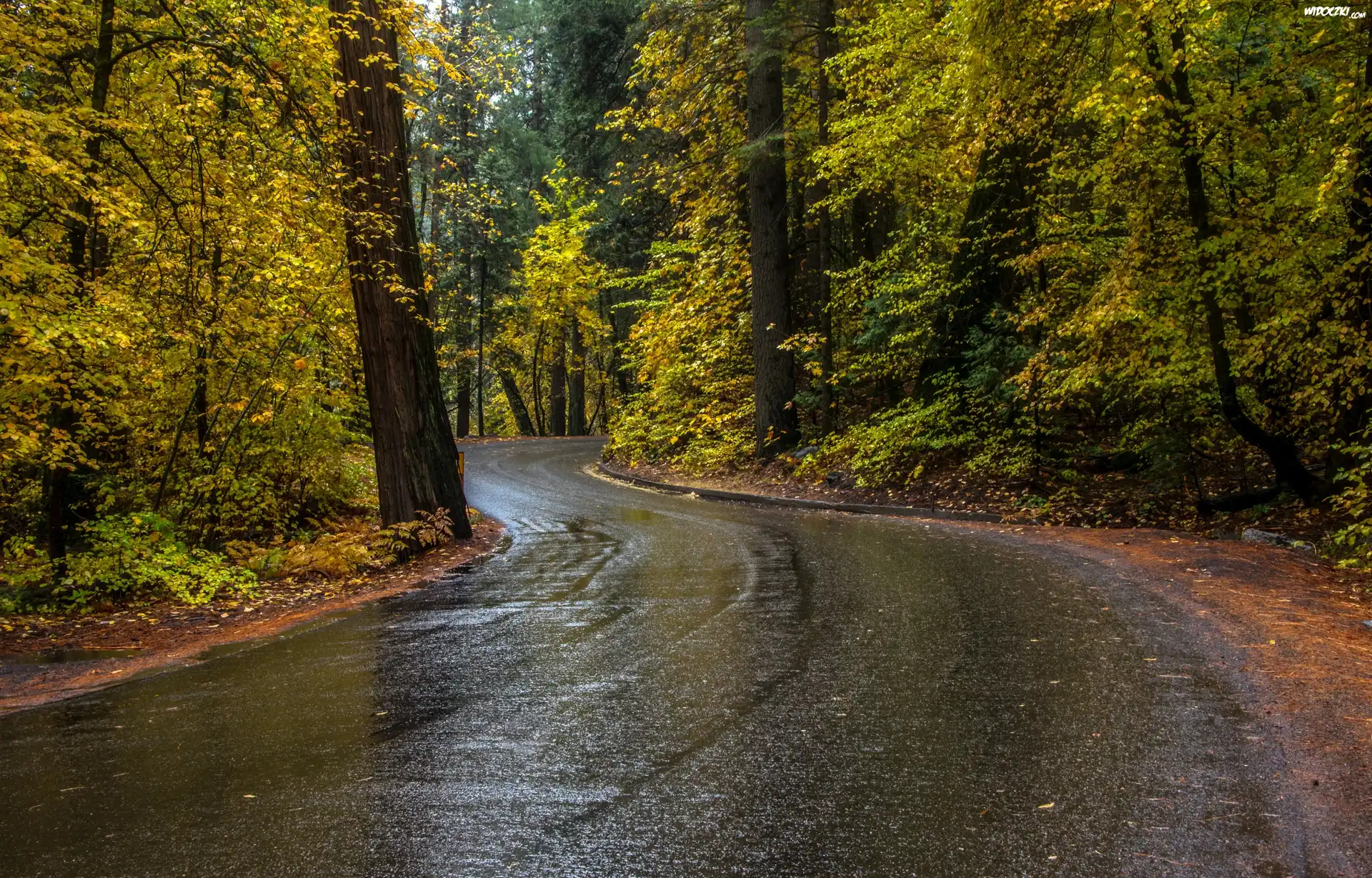 Zdjęcia, Mokra, Droga, Jesienny, Las