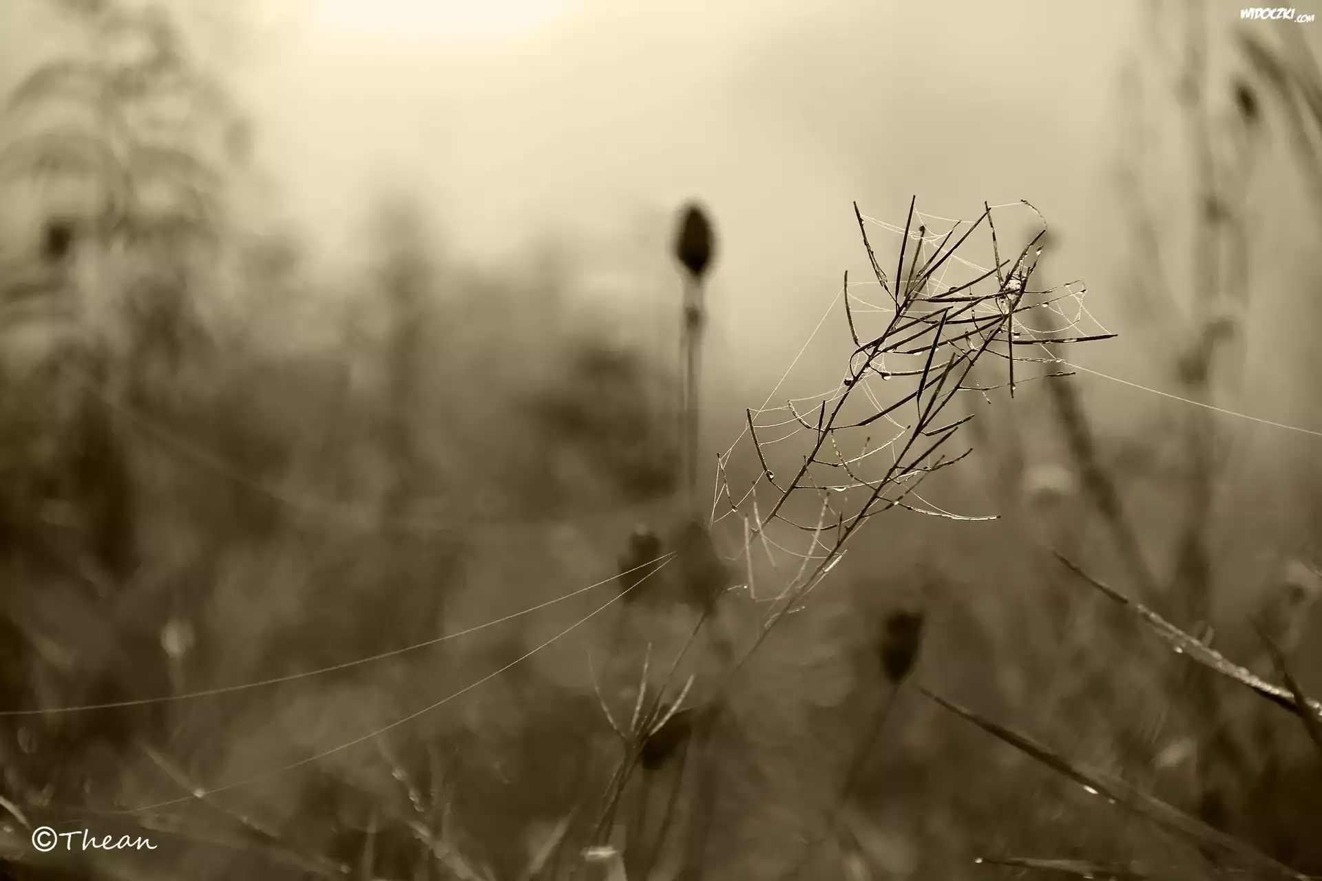 Zdjęcia, Mokre, Rośliny, Łąka, Zamglona, Pajęczyny, Krople