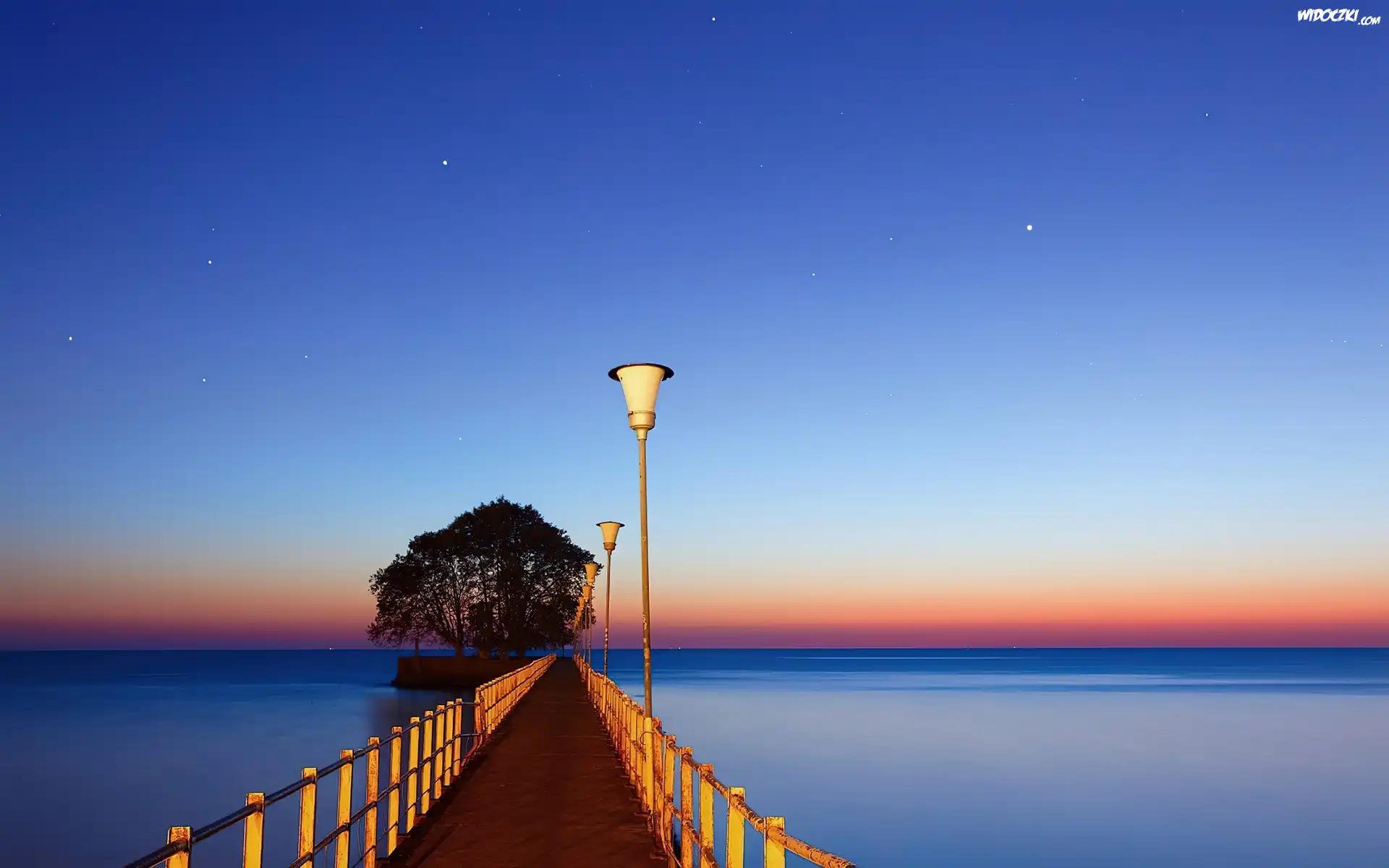 Zdjęcia, Molo, Latarnia, Drzewo, Ocean