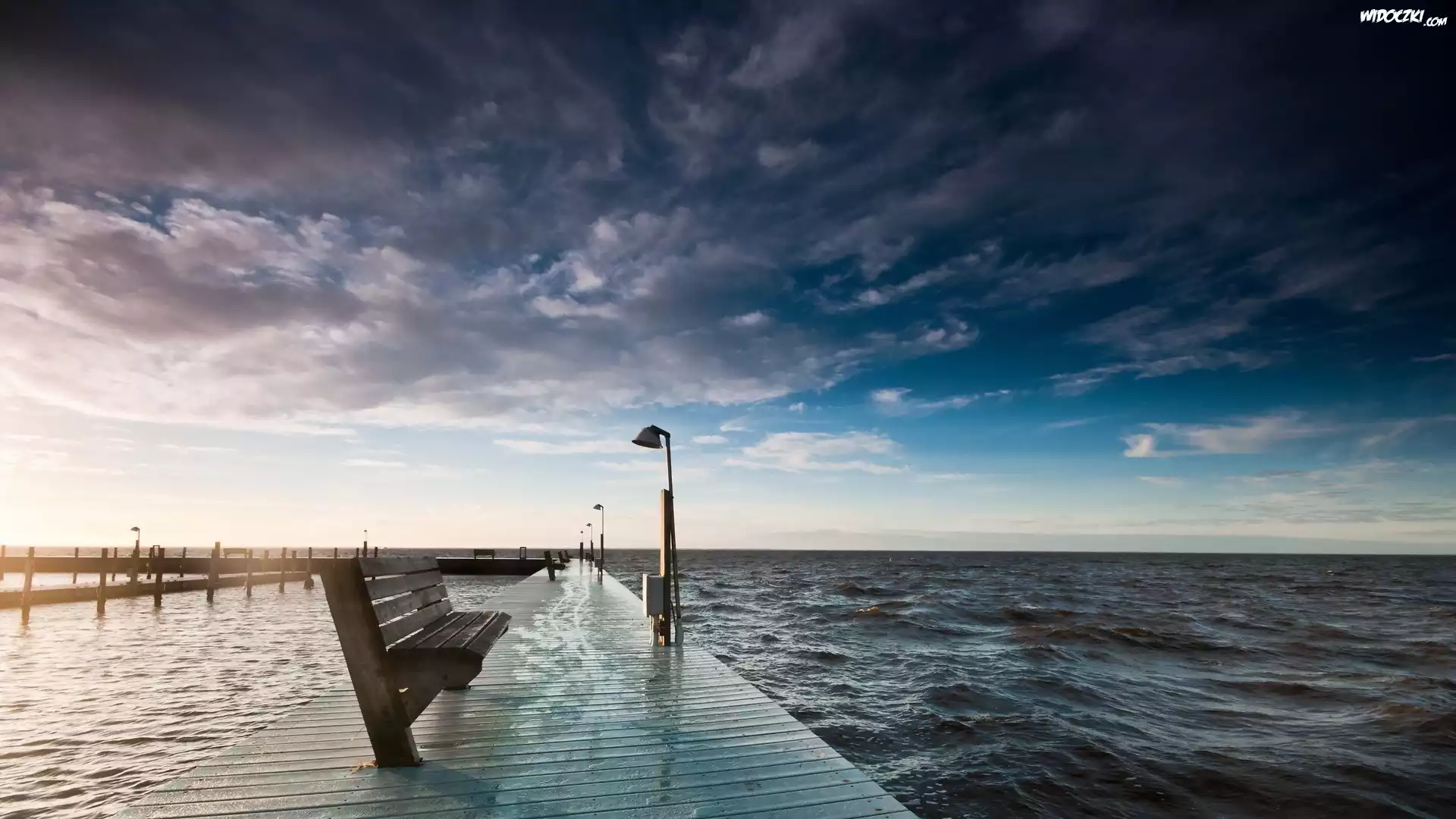 Zdjęcia, Molo, Ławka, Latarnie, Morze