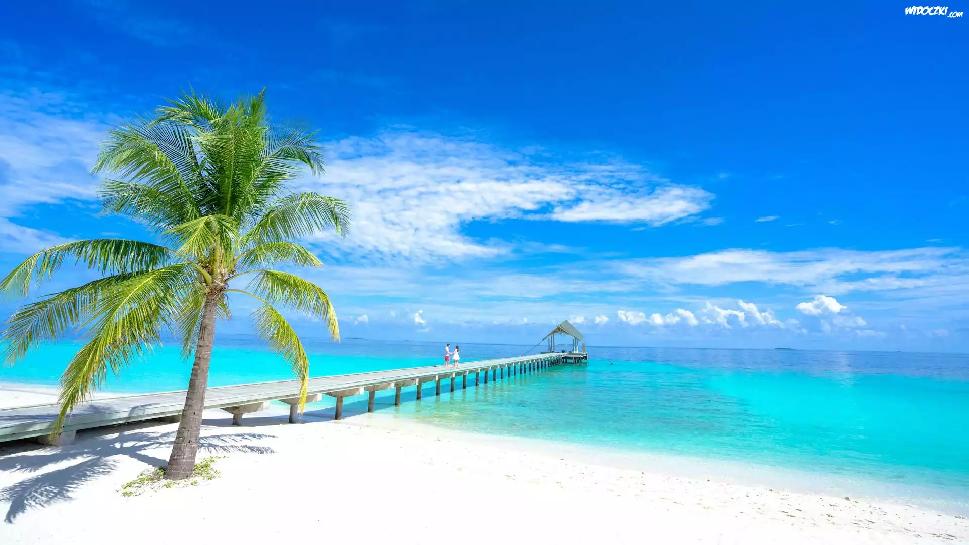 Zdjęcia, Morze, Plaża, Palmy, Molo