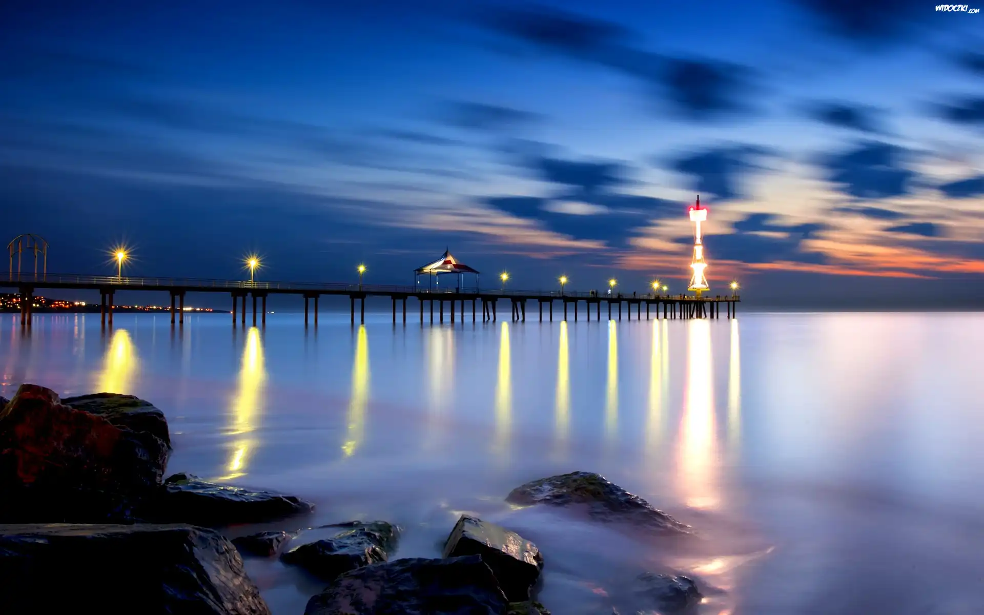 Zdjęcia, Molo, Morze, Skały, Chmury