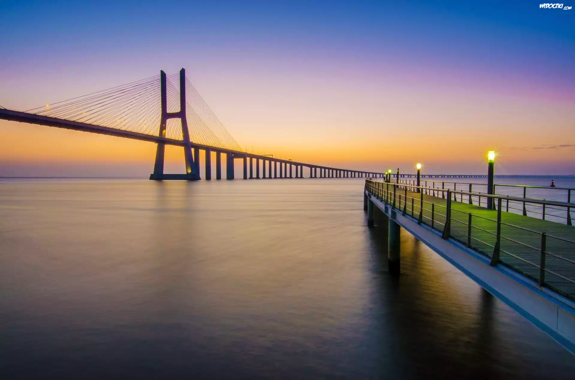 Zdjęcia, Molo, Most, Morze, Zachód, Słońca