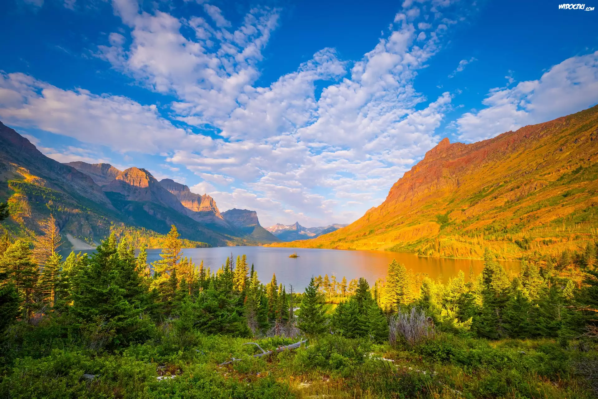 Zdjęcia, Jezioro, Saint Mary Lake, Góry, Park Narodowy Glacier, Stan Montana, Stany Zjednoczone