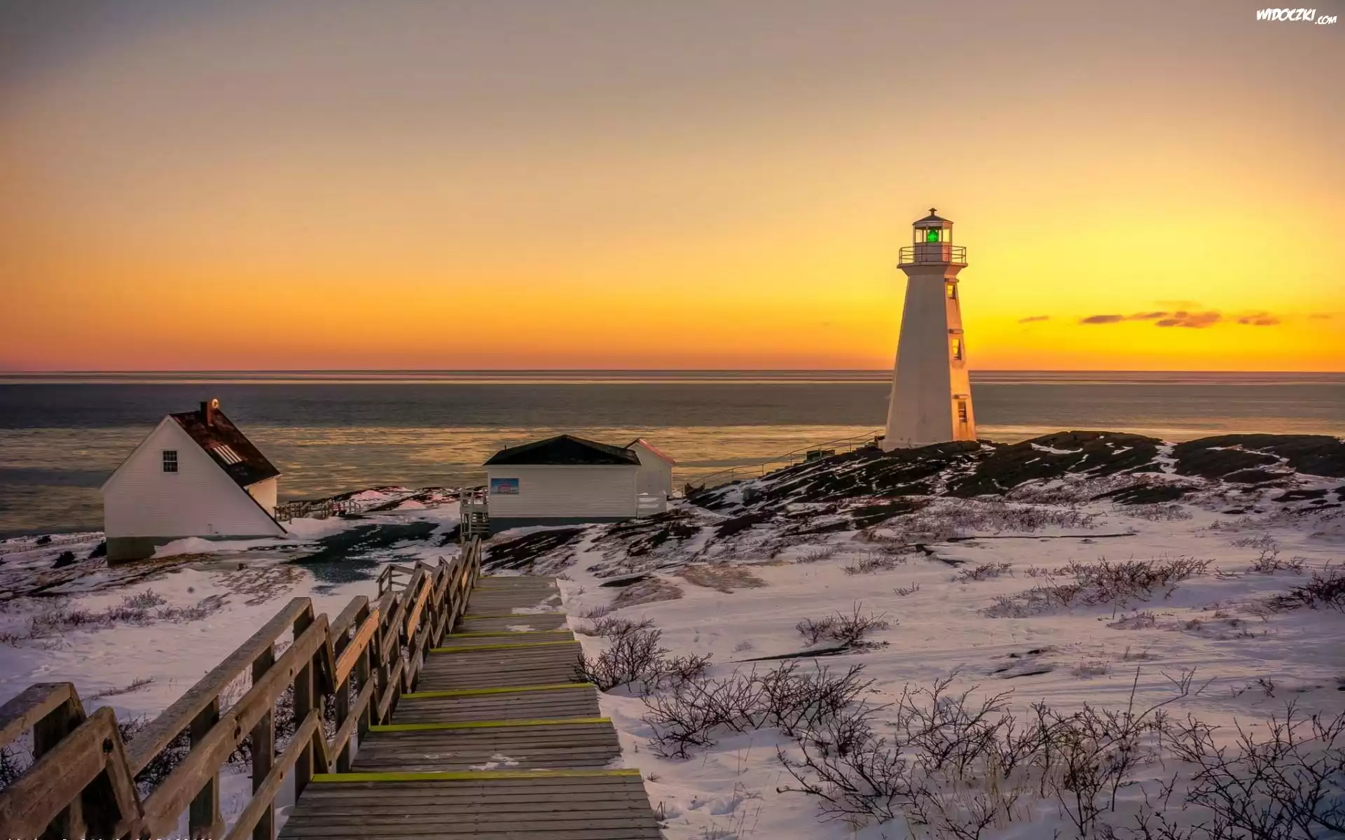 Zdjęcia, Latarnia, Morska, Schody, Domy, Wschód, Słońca, Zima
