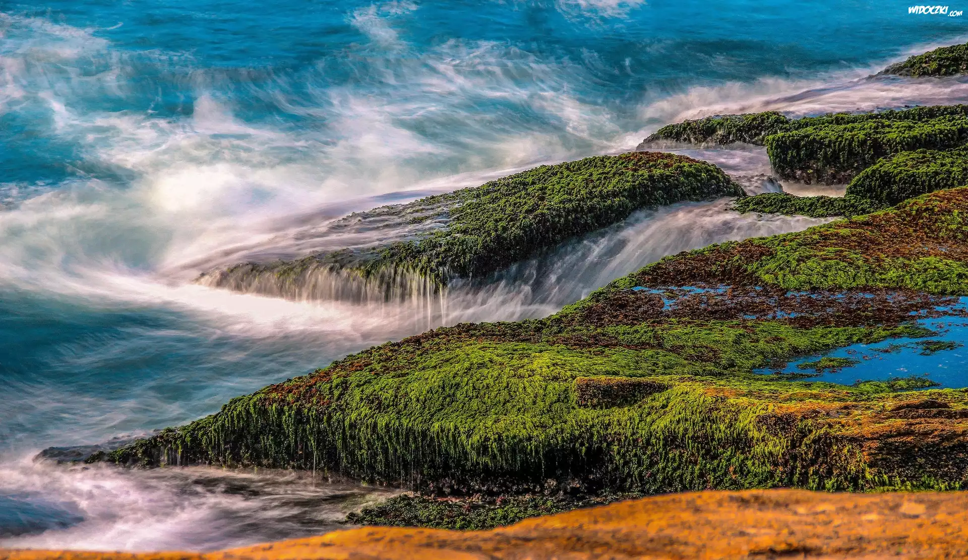 Zdjęcia, Morskie, Fale, Brzeg, Wodorosty