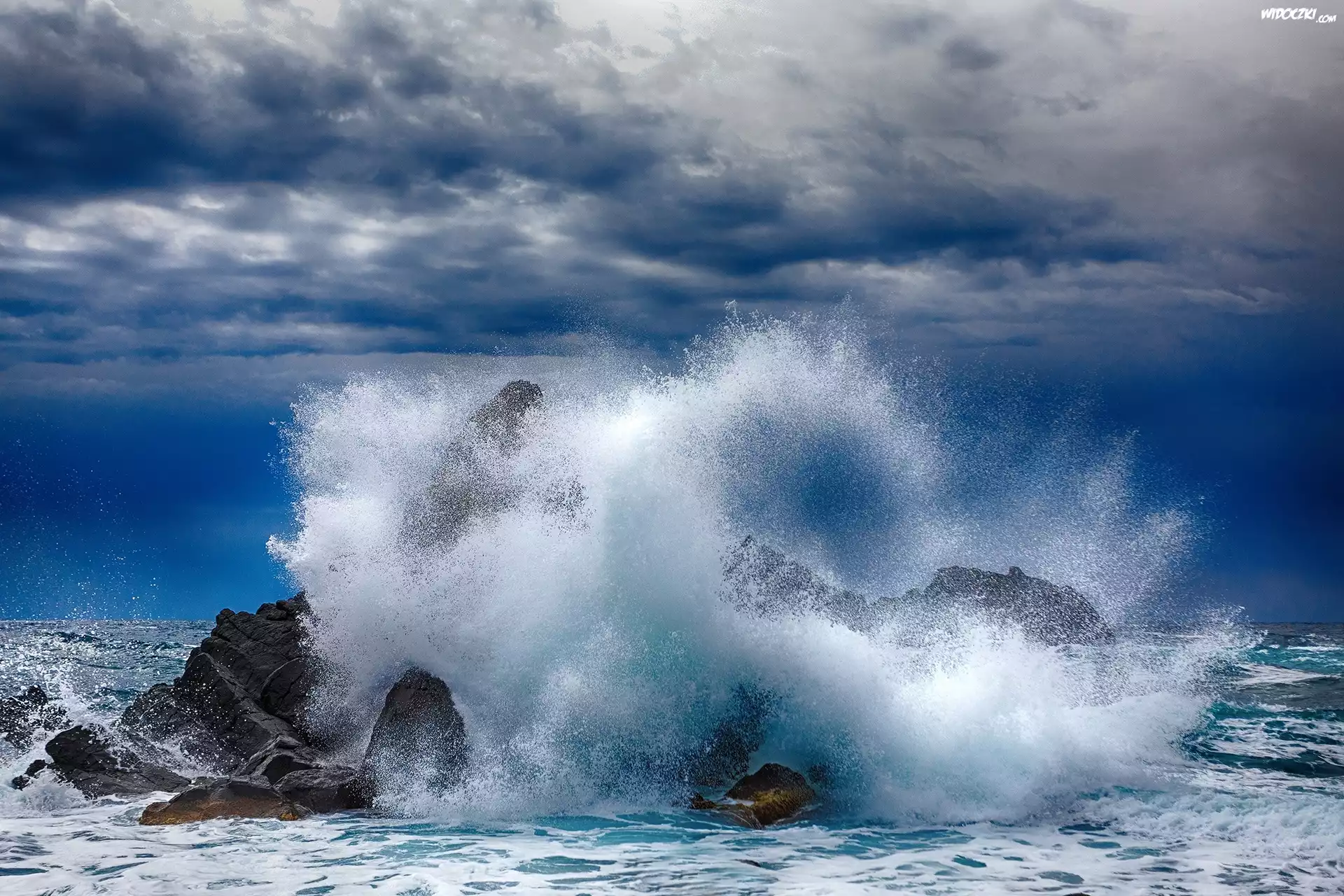 Zdjęcia, Morskie, Fale, Skały, Chmury