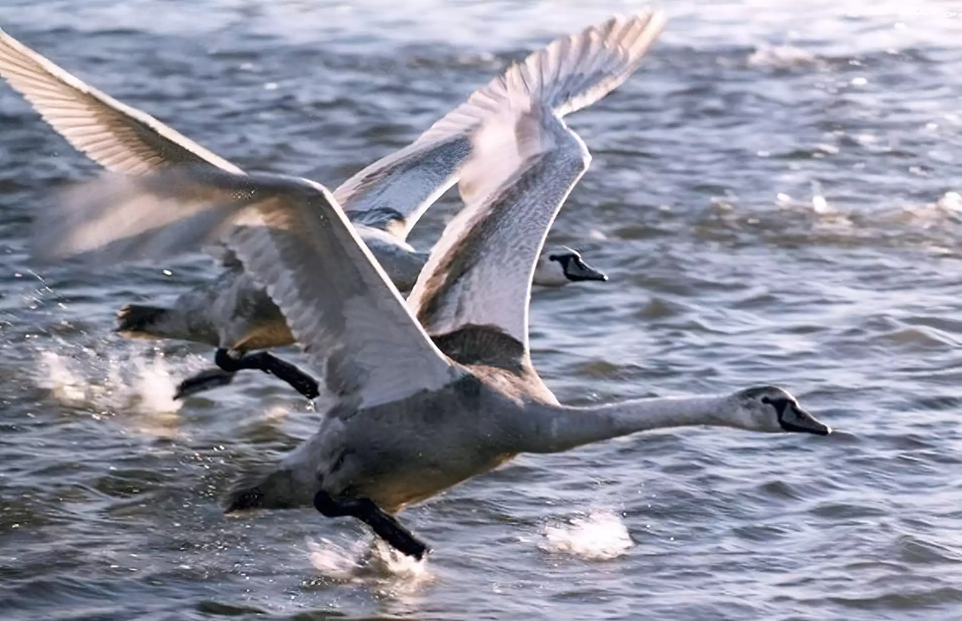 Zdjęcia, Łabędzie, Morze, Lot