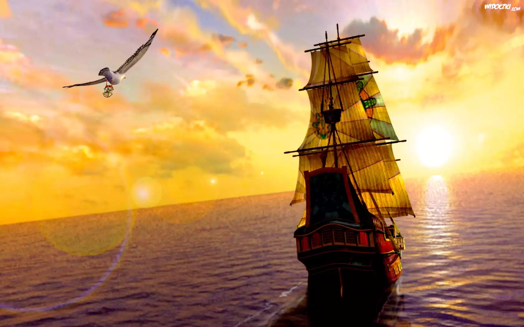 Zdjęcia, Żaglowiec, Morze, Mewa