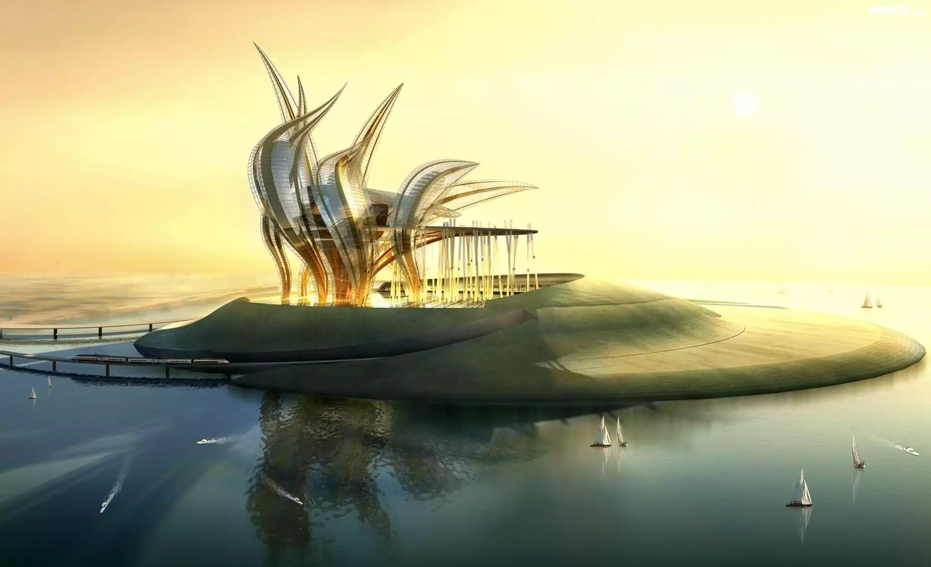 Morze, Wyspa, Żaglówki, Fantazja