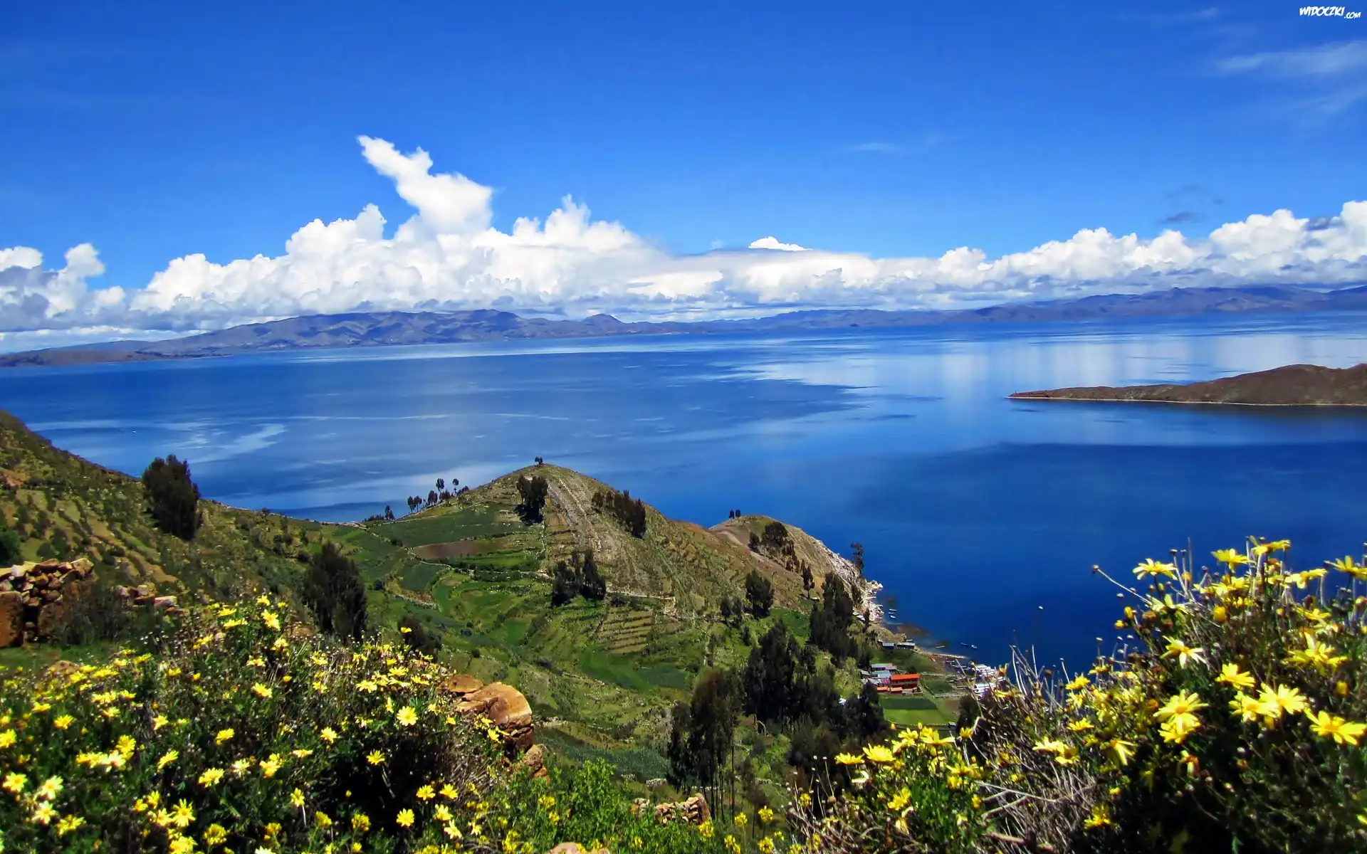 Zdjęcia, Morze, Góry, Łąka, Kwiaty