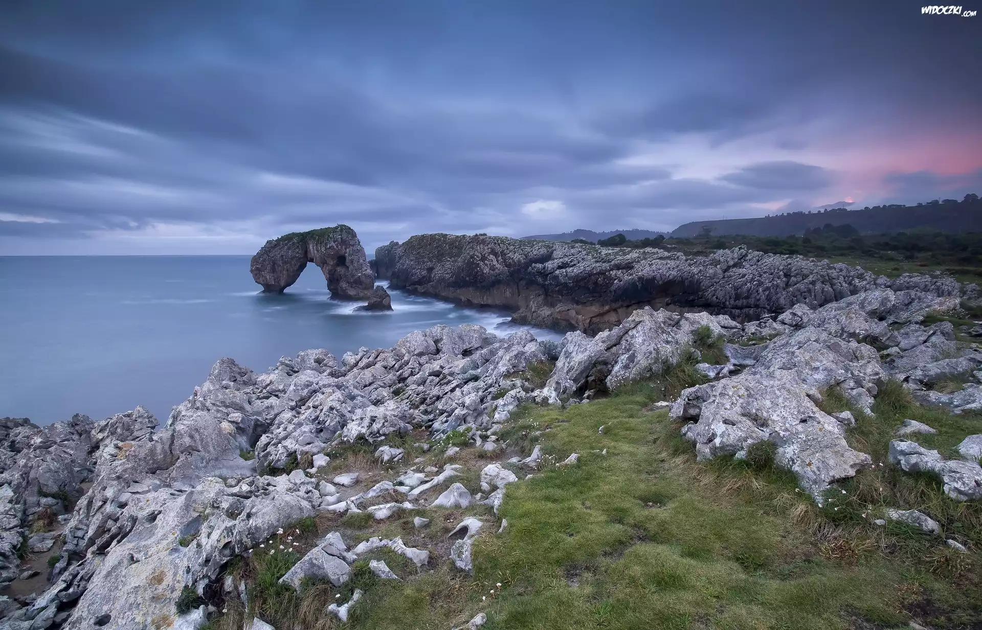 Zdjęcia, Morze, Brzeg, Skały, Villahormes, Asturia, Hiszpania