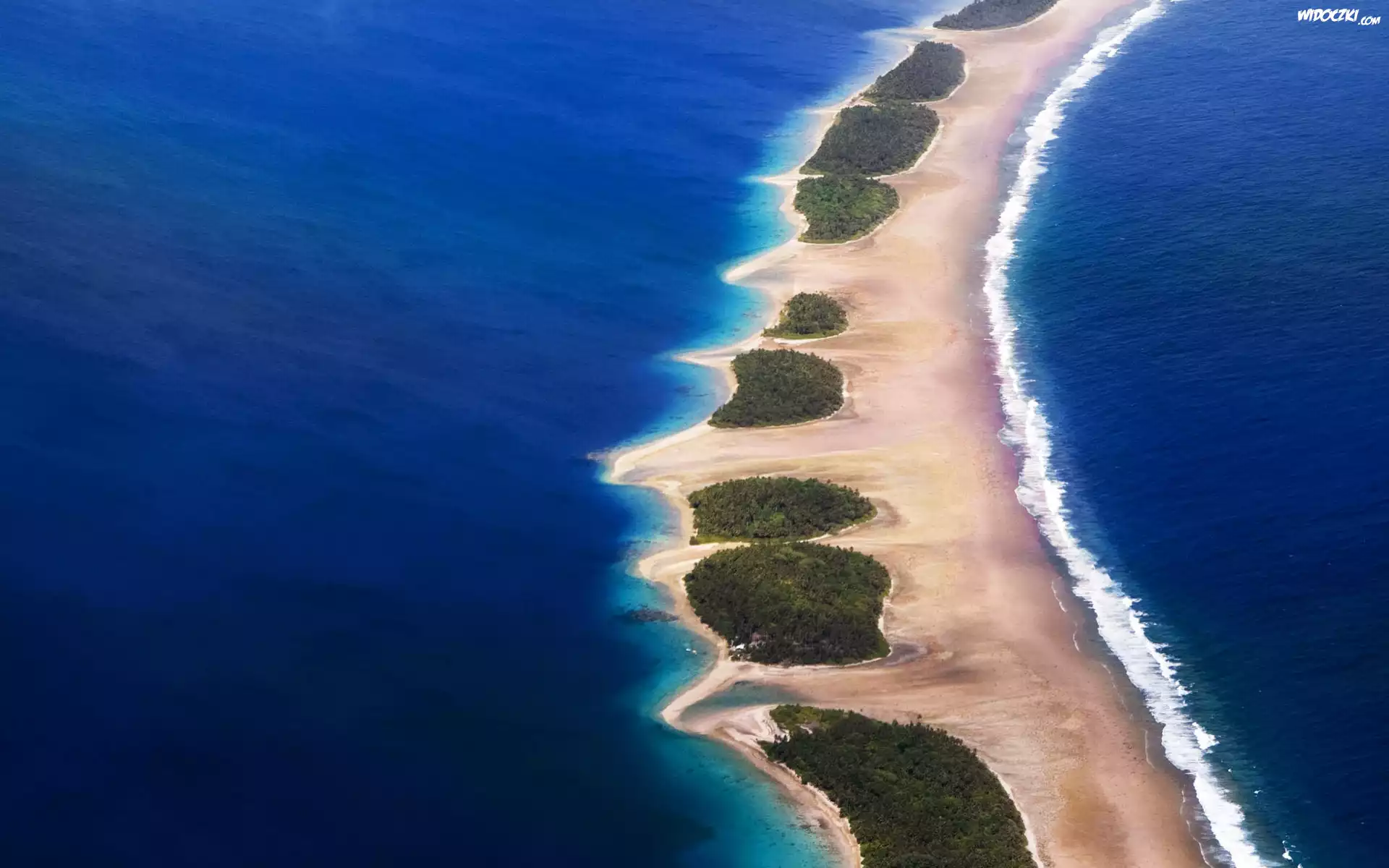 Zdjęcia, Morze, Fale, Atol, Rośliny