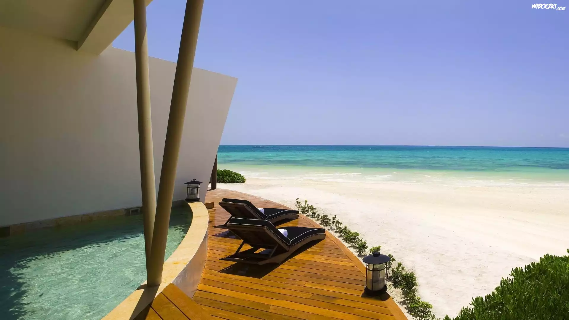 Zdjęcia, Morze, Plaża, Basen, Leżaki, Wakacje
