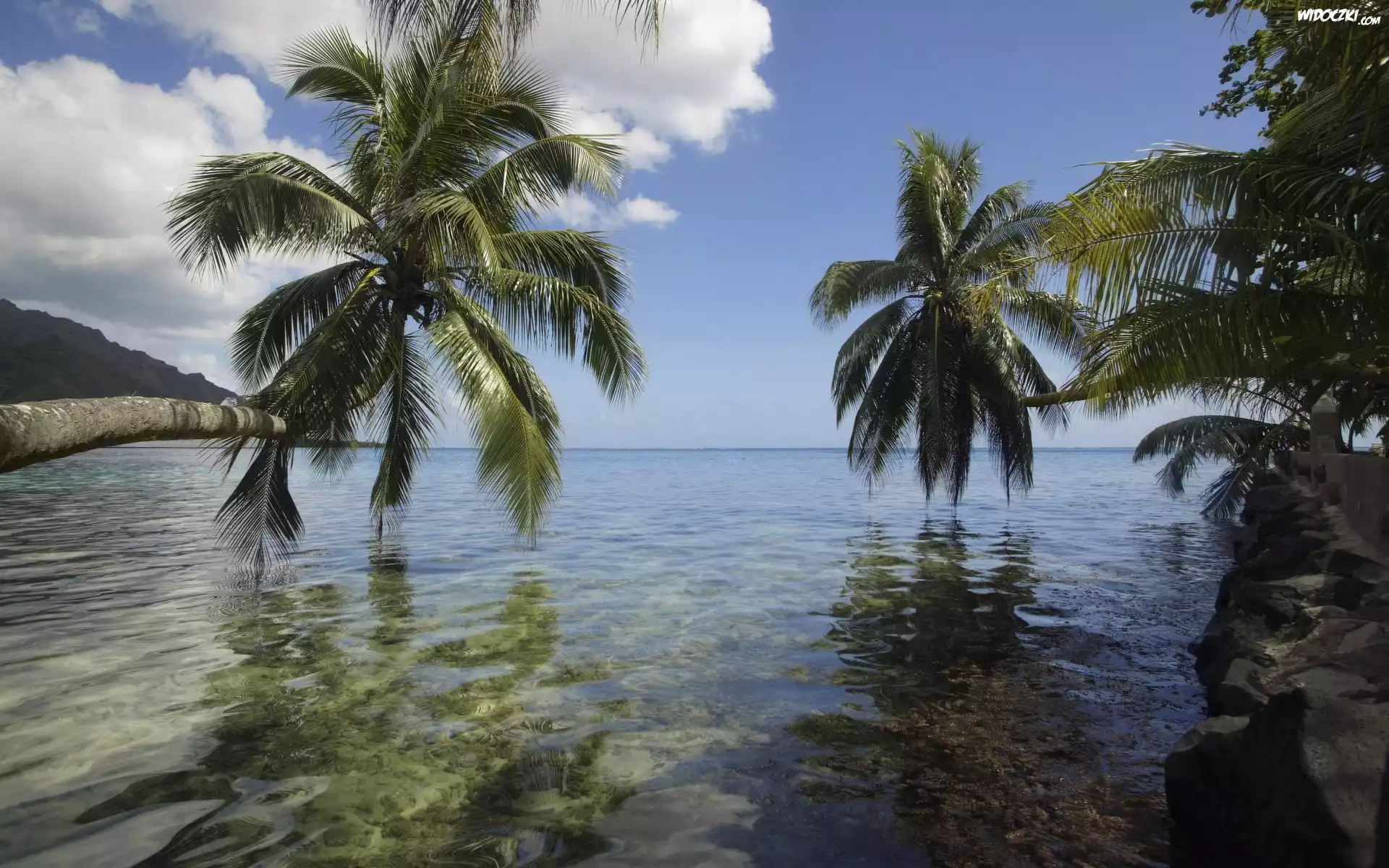 Zdjęcia, Morze, Palmy, Białe, Chmury