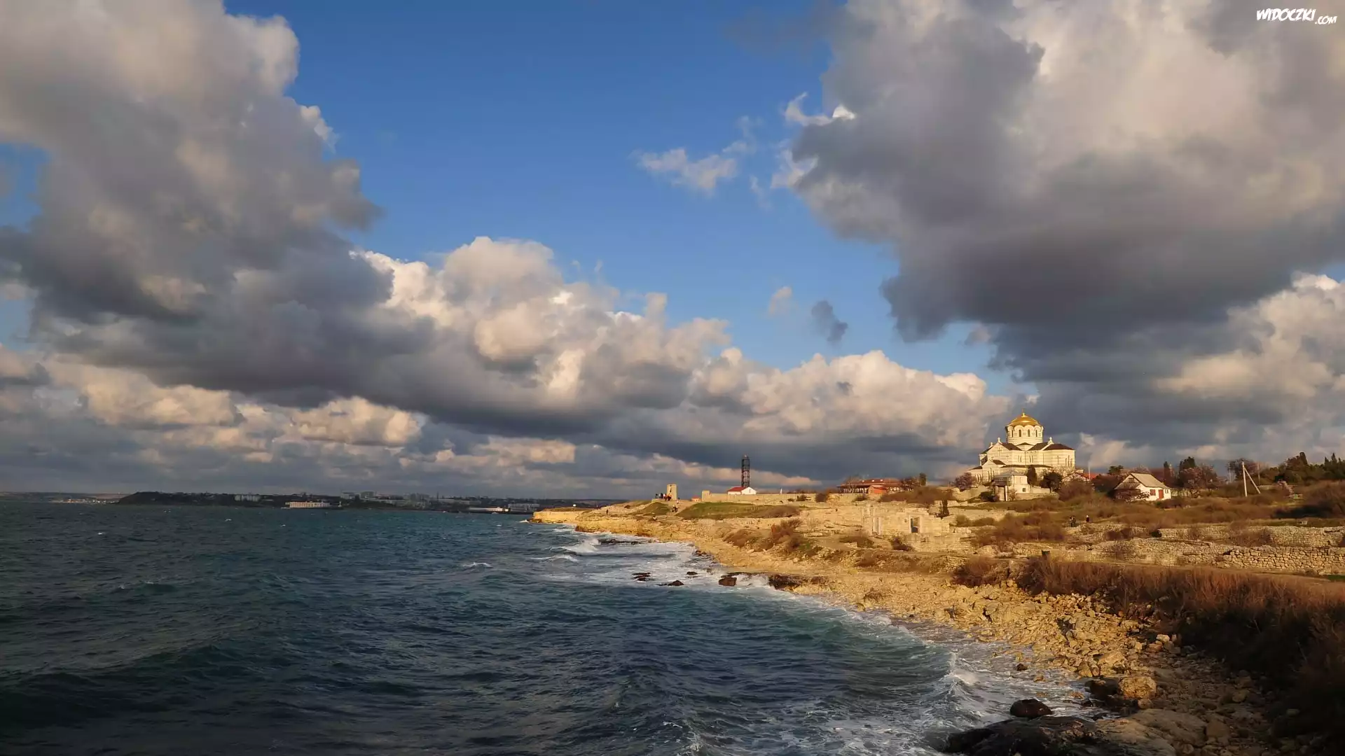 Zdj臋cia, Morze, Brzeg, Chmury, Cerkiew, Krym