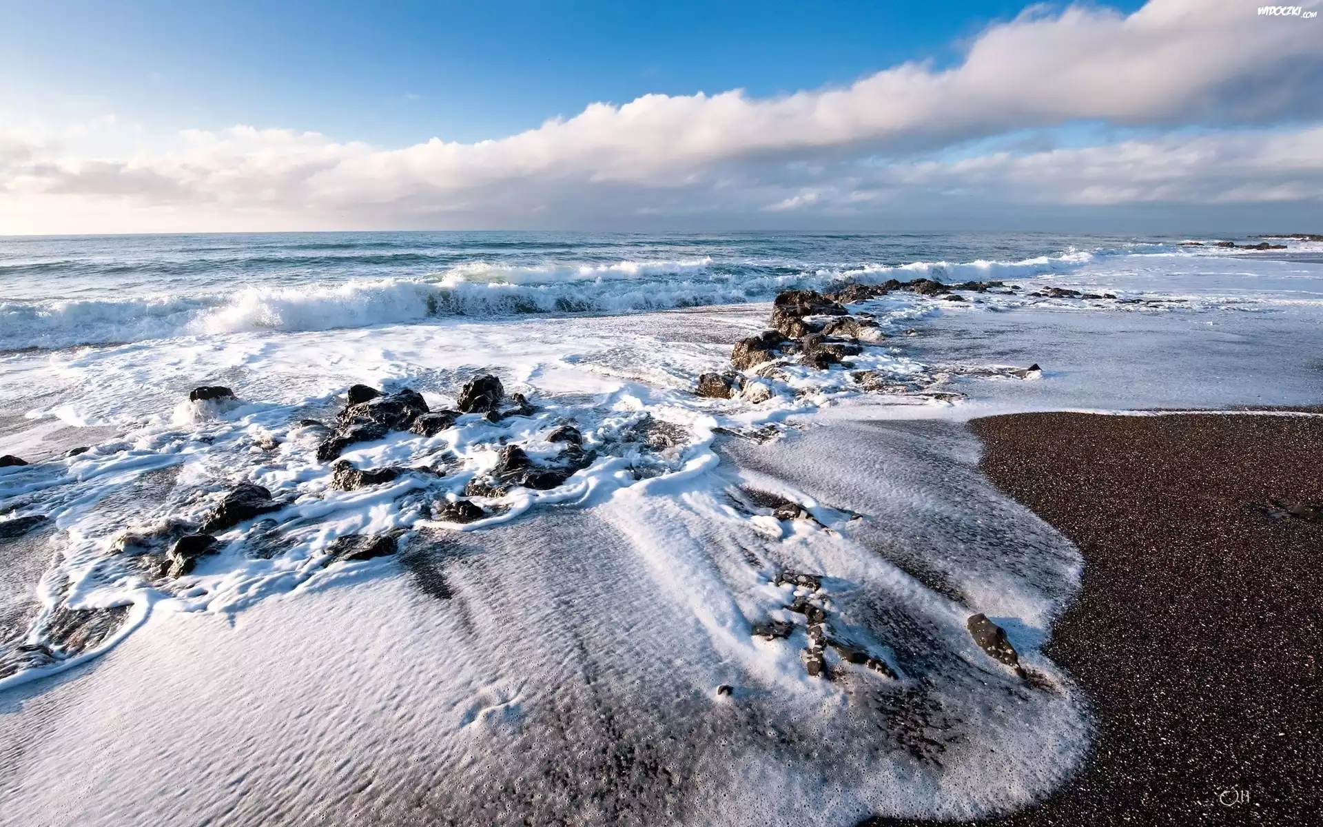 Morze, Fale, Chmury, Niebo