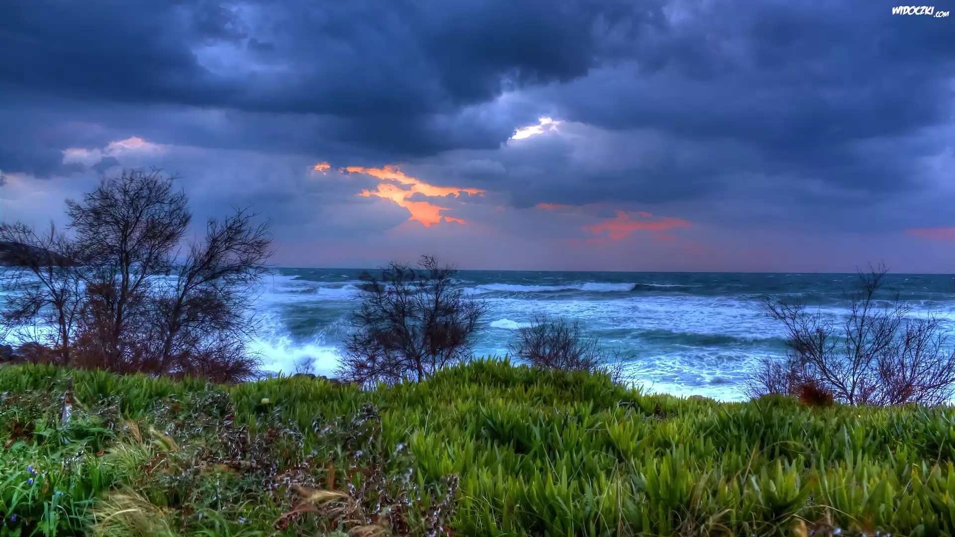 Zdjęcia, Morze, Fale, Chmury, Wybrzeże