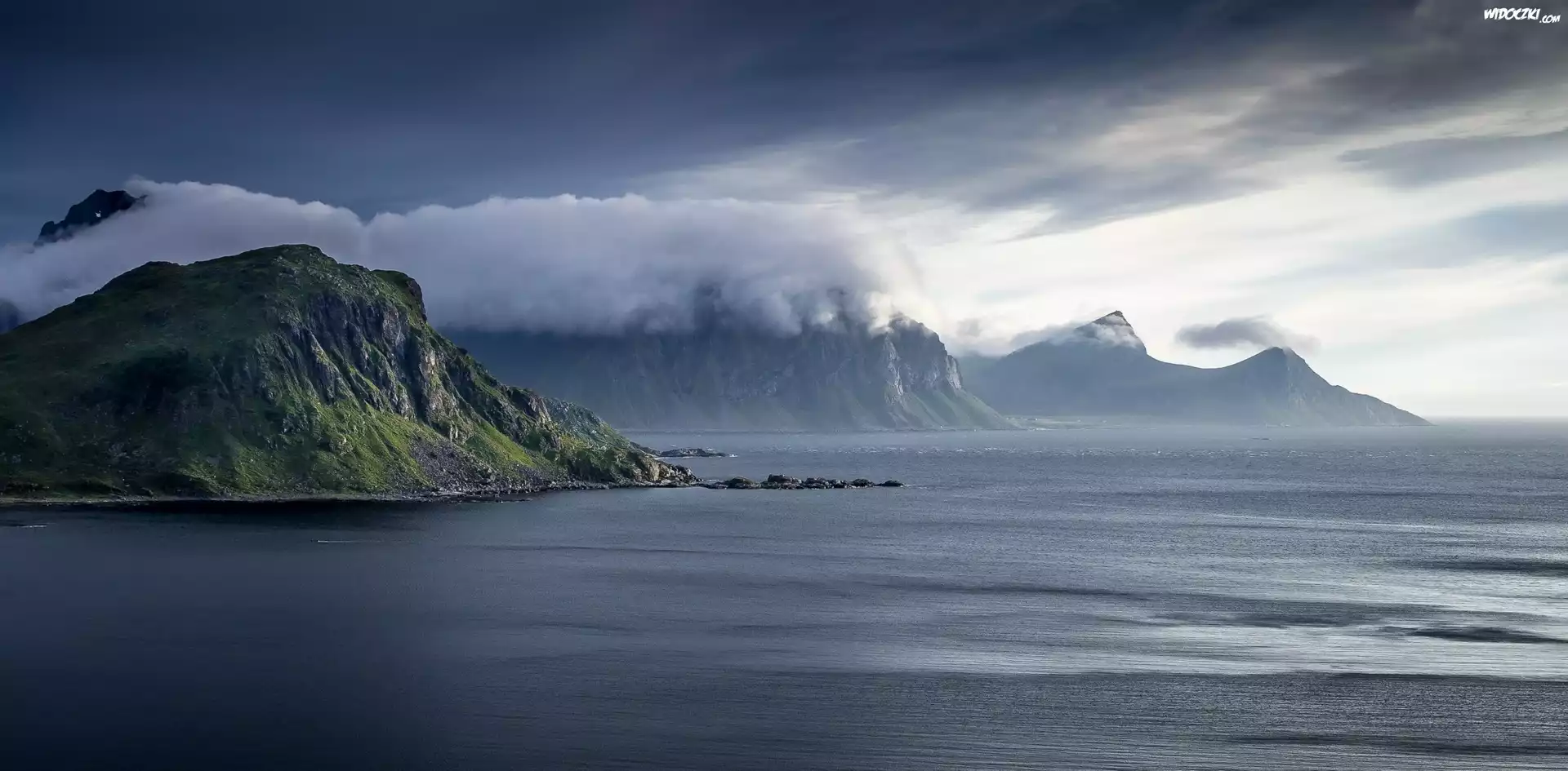 Zdjęcia, Morze, Góry, Chmury, Wybrzeże