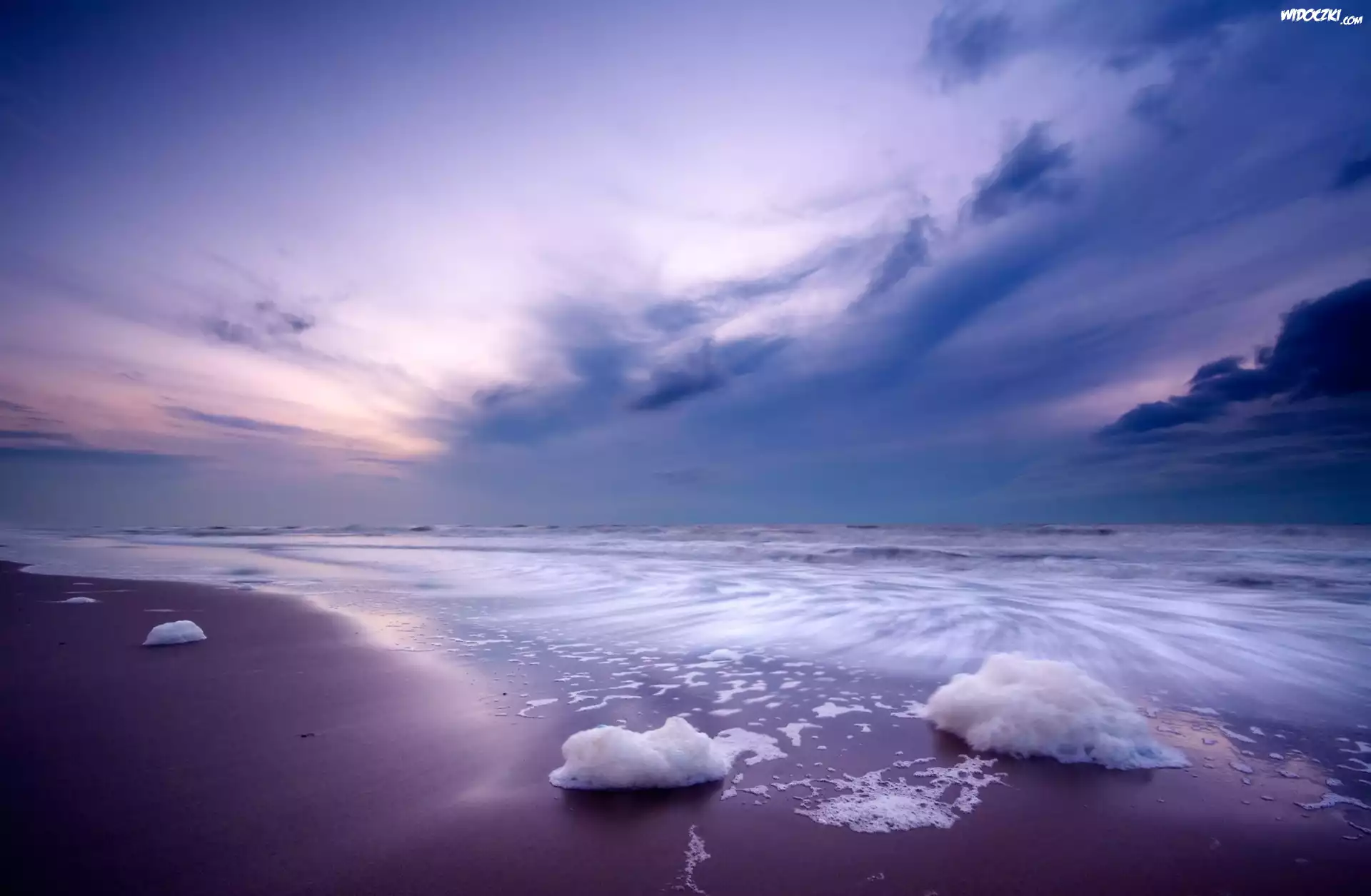 Zdjęcia, Morze, Plaża, Lód, Niebo, Chmury, Zima