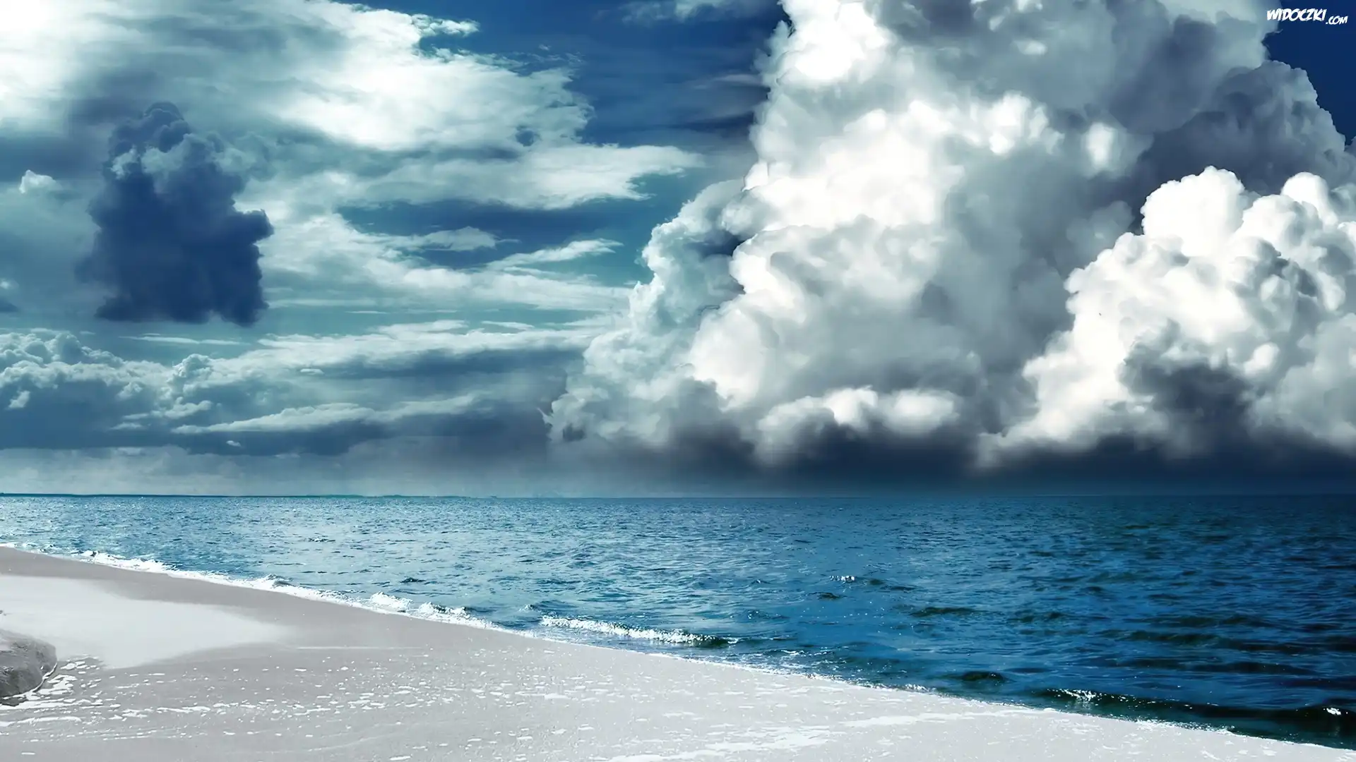 Zdjęcia, Chmury, Morze, Plaża