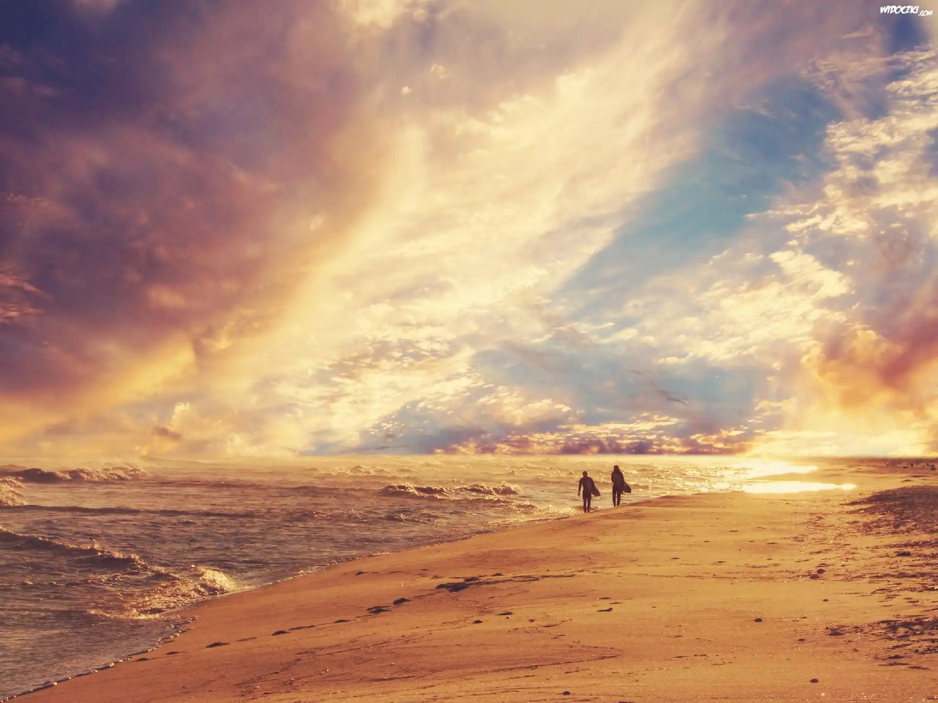 Zdjęcia, Morze, Plaża, Chmury, Ludzie